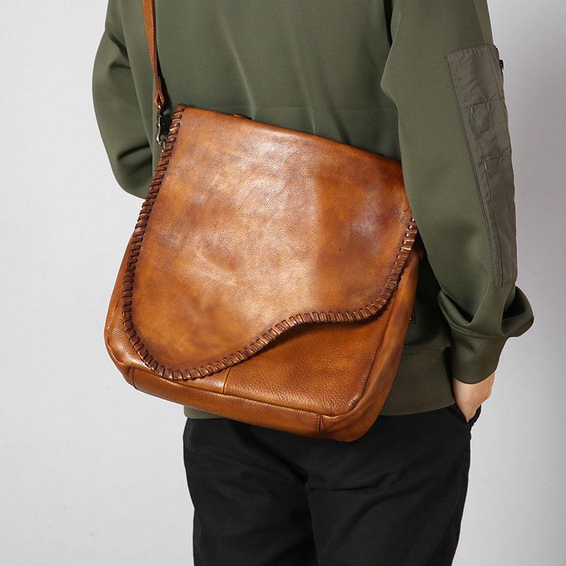 Handmade Leather Mens Handbag Cool Messenger Bag Shoulder Bag for Men