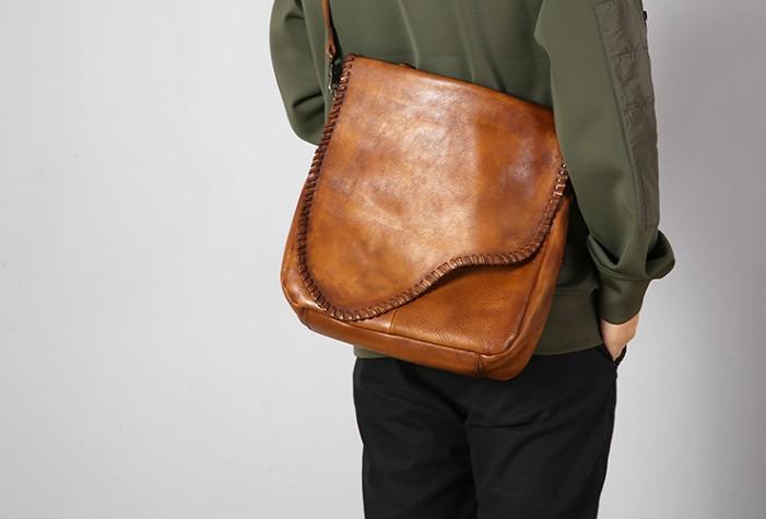 Design: Handmade Leather Mens Handbag Cool Messenger Bag Shoulder Bag for Men