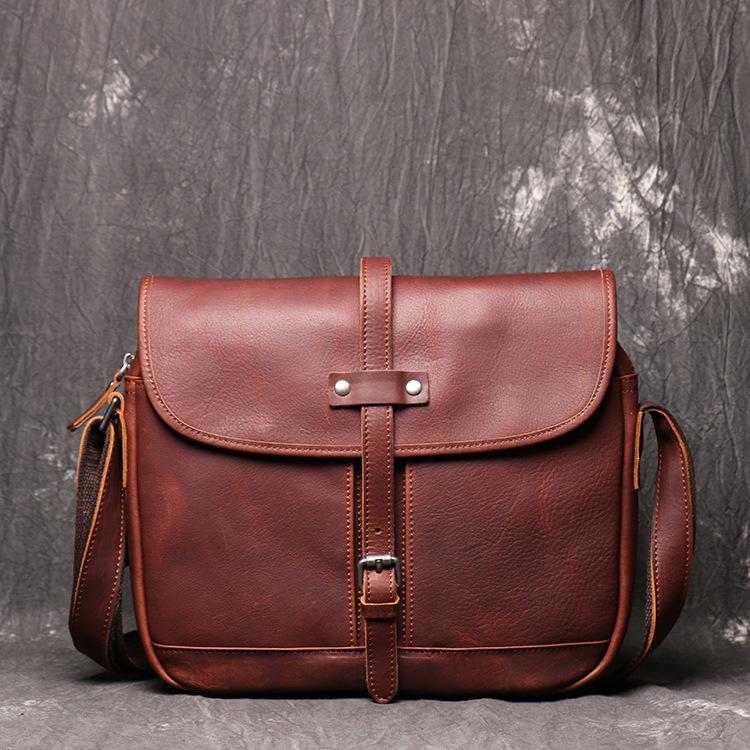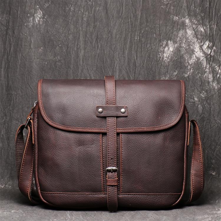 Style: Maroon Cool Leather 10 inches Brown Messenger Bag Handbag Shoulder Bag For Men
