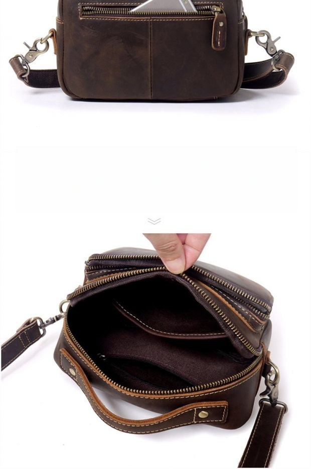 Design: Mens Small Crossbody Bag Small Mens Crossbody Bag Brown Leather Small Crossbody Bag for Men