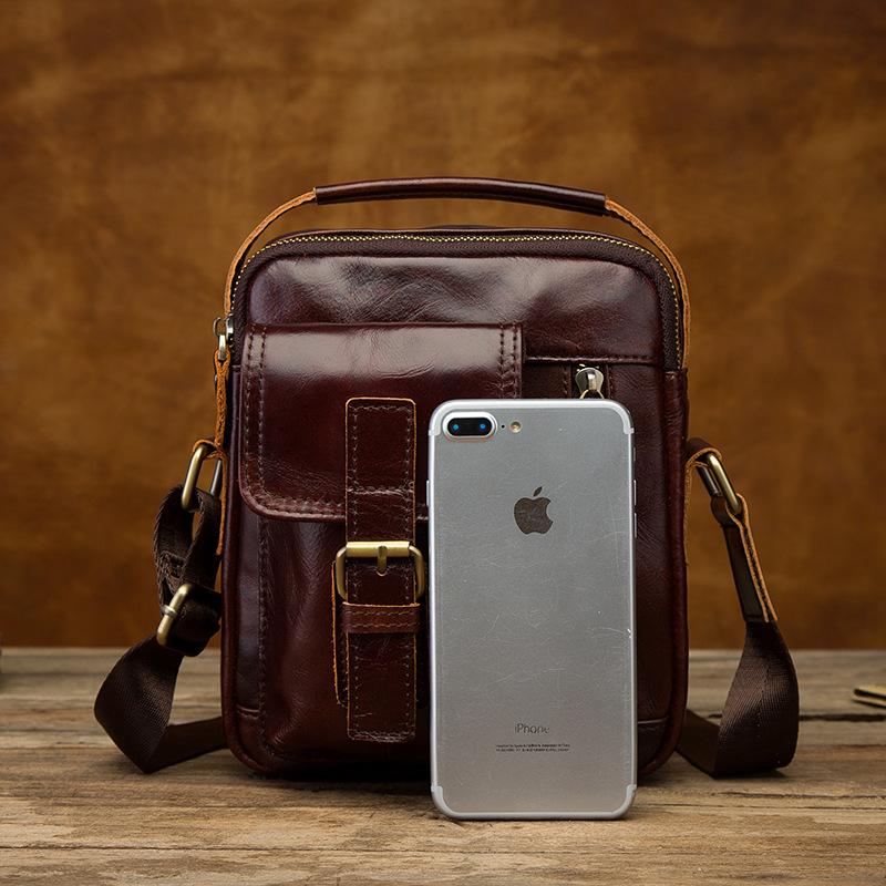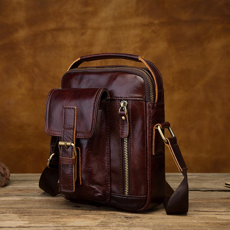 Design: Vintage Black Leather Men's Small Side Bag Handbag Shoulder Bag For Men