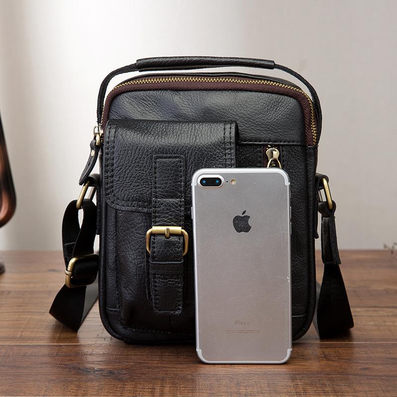Design: Vintage Black Leather Men's Small Side Bag Handbag Shoulder Bag For MenOverview: