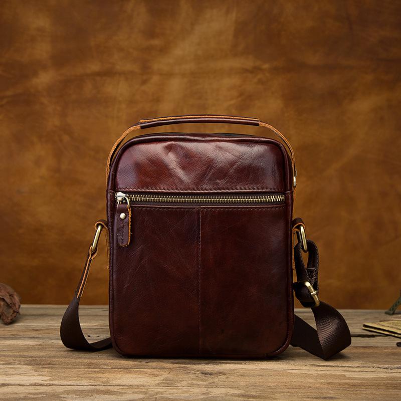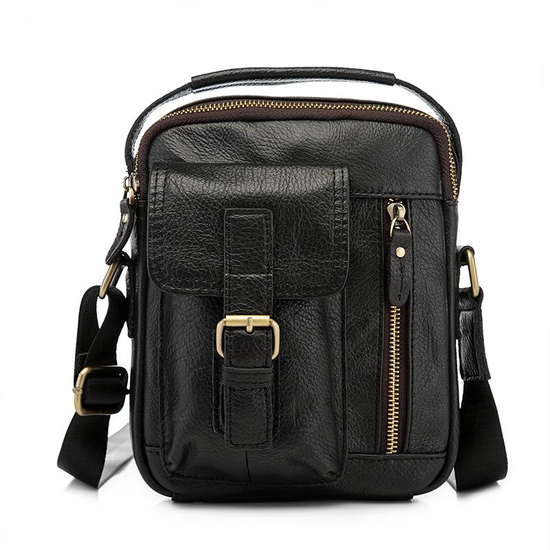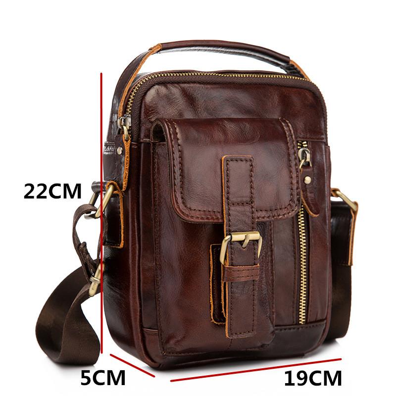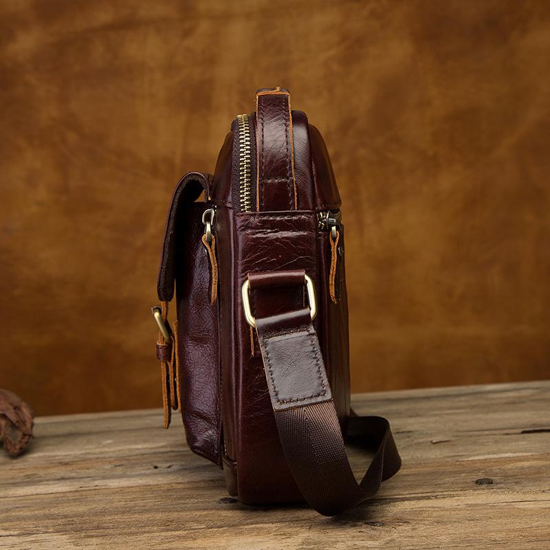 Design: Vintage Black Leather Men's Small Vertical Side Bag Brown Shoulder Bag Handbag For Men