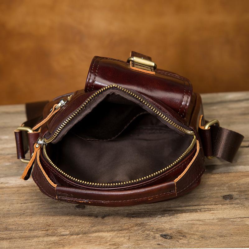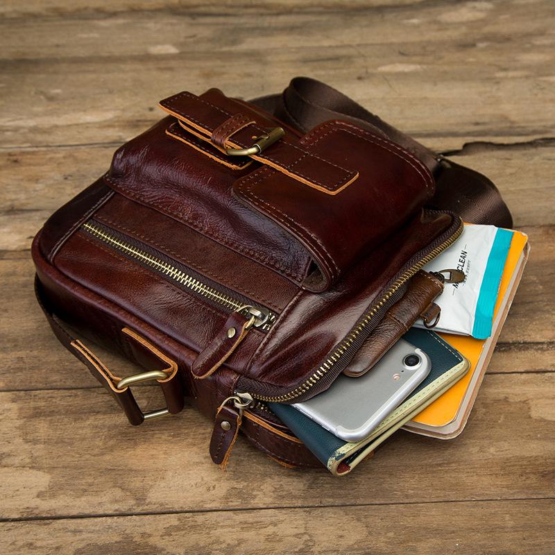 Design: Vintage Black Leather Men's Small Vertical Side Bag Brown Shoulder Bag Handbag For MenOverview: