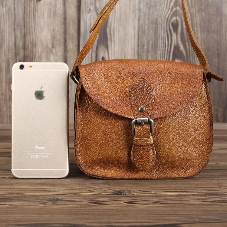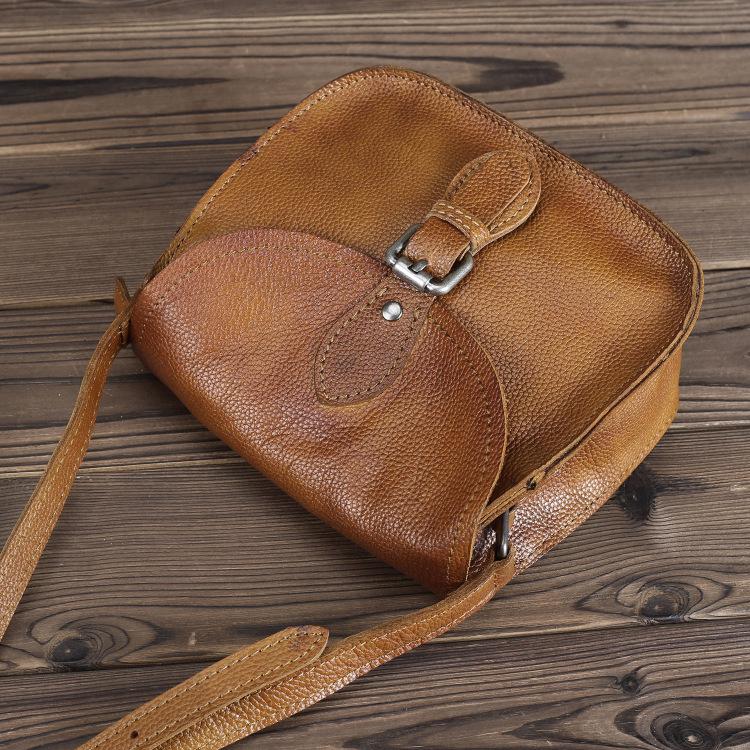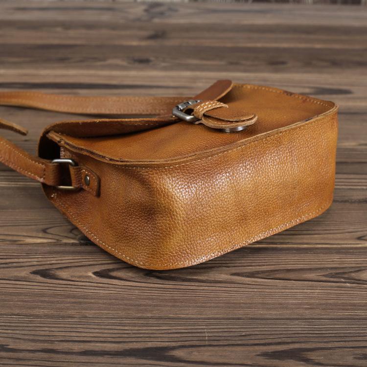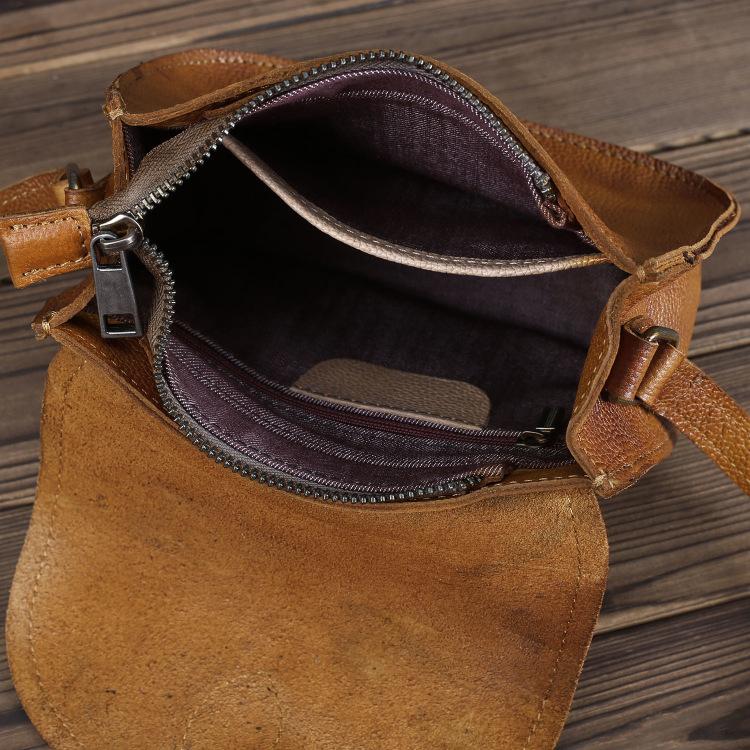Design: Simple Brown Leather Small Small Zipper Messenger Bag Shoulder Bag Orange Side Bag For MenOverview: