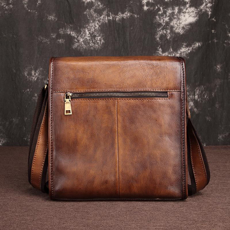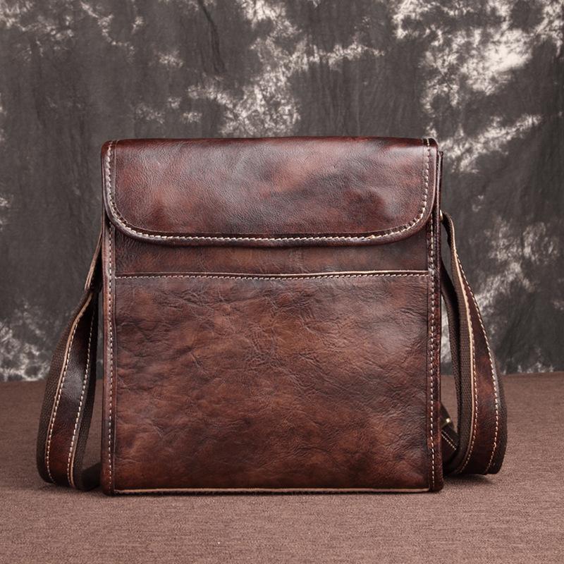 Style: Vintage Brown Leather Men's Small Vertical Messenger Bag Side Bag Courier Bag For Men