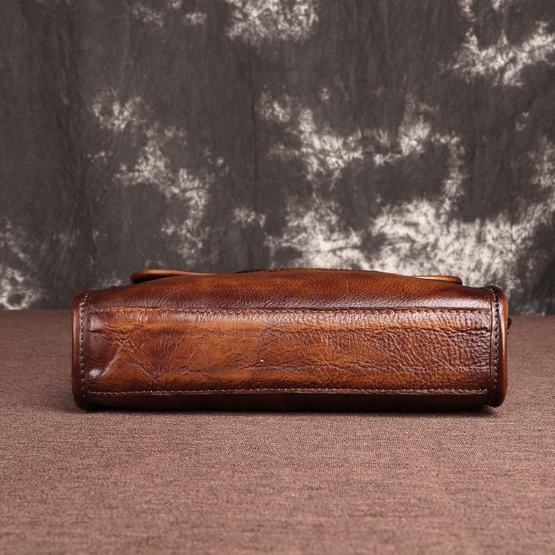 Vintage Brown Leather Men's Small Vertical Messenger Bag Side Bag Courier Bag For Men