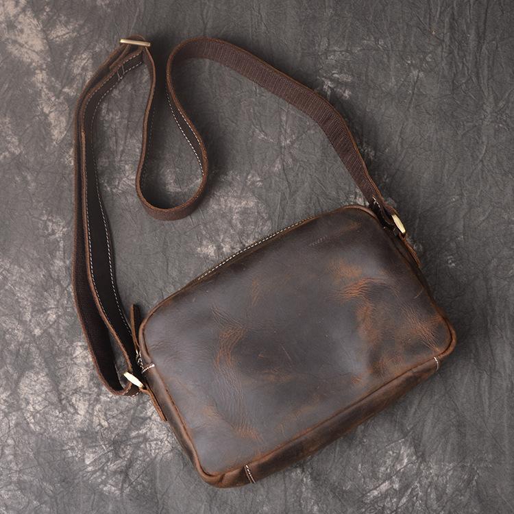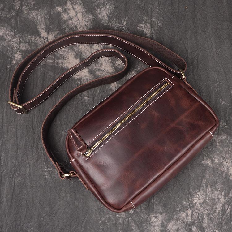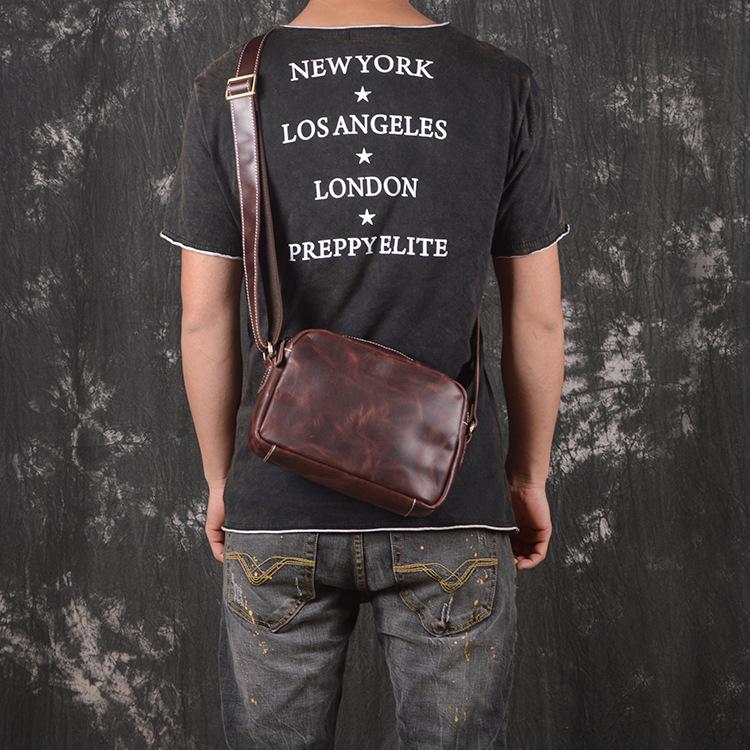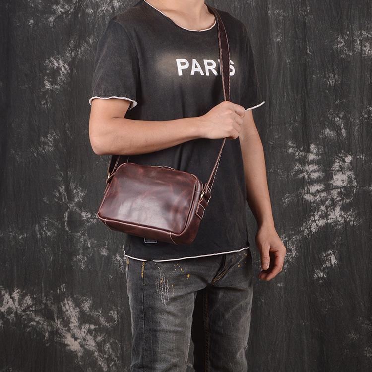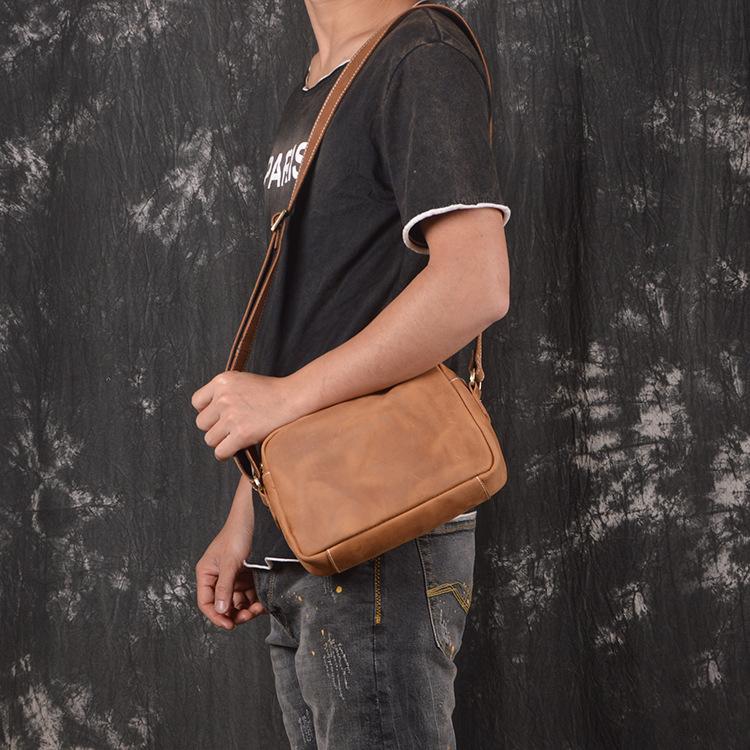 Style: Cool Brown Leather Men's Small Shoulder Bag Messenger Bag Side Bag For Men