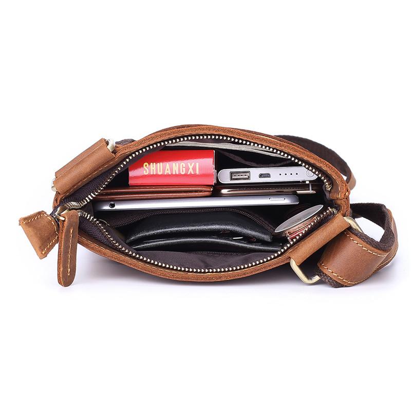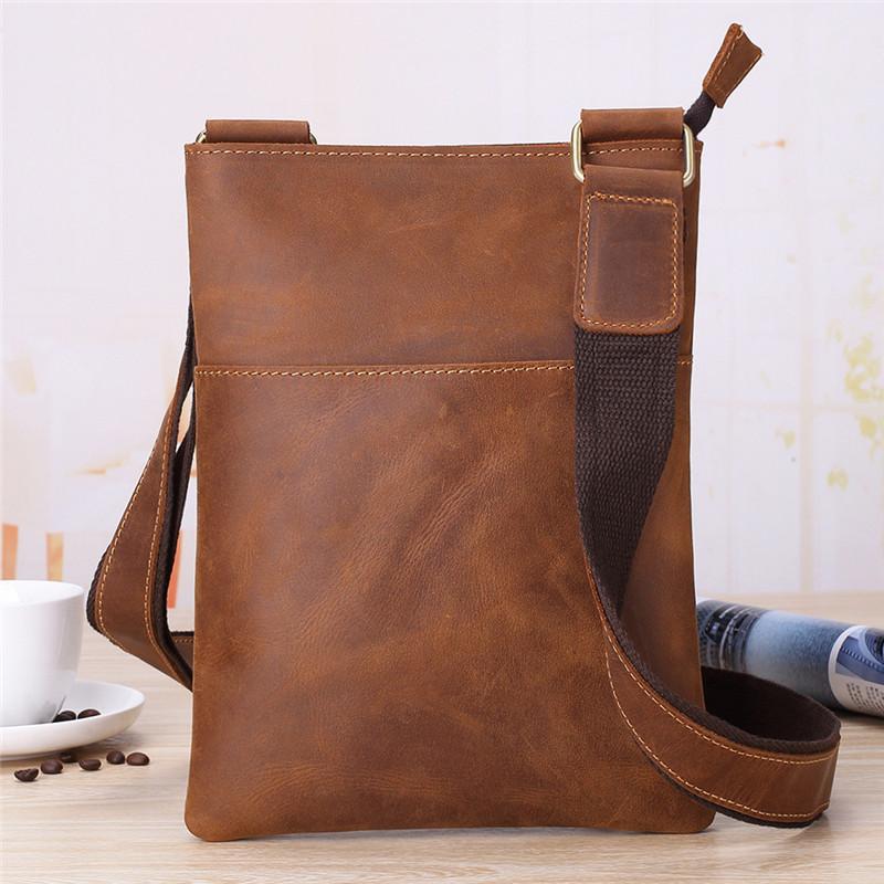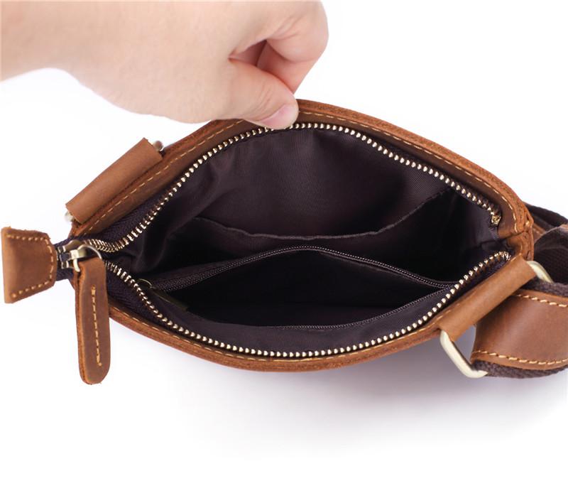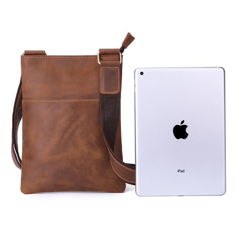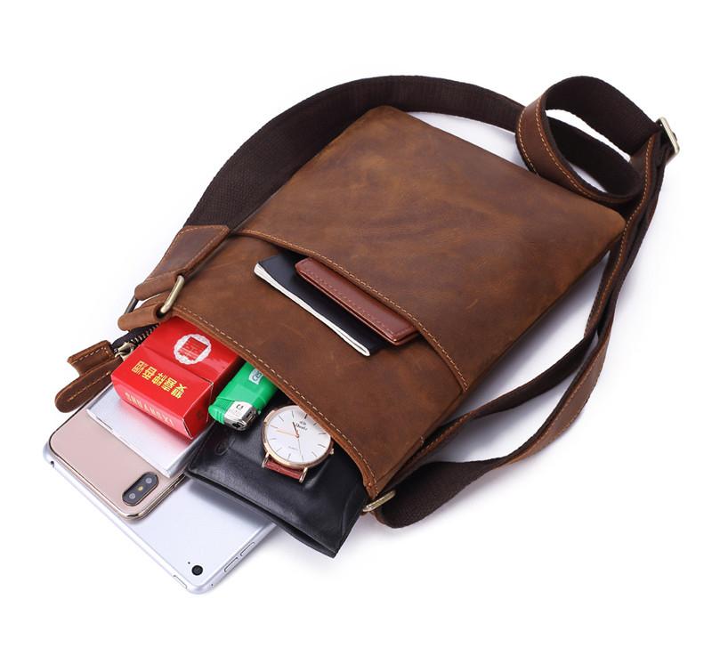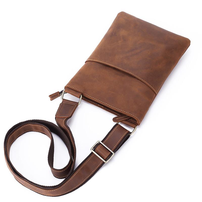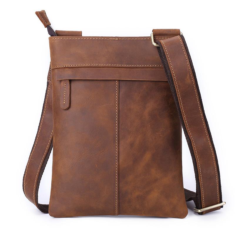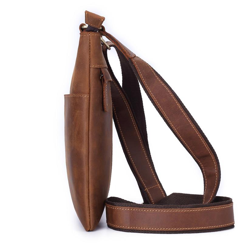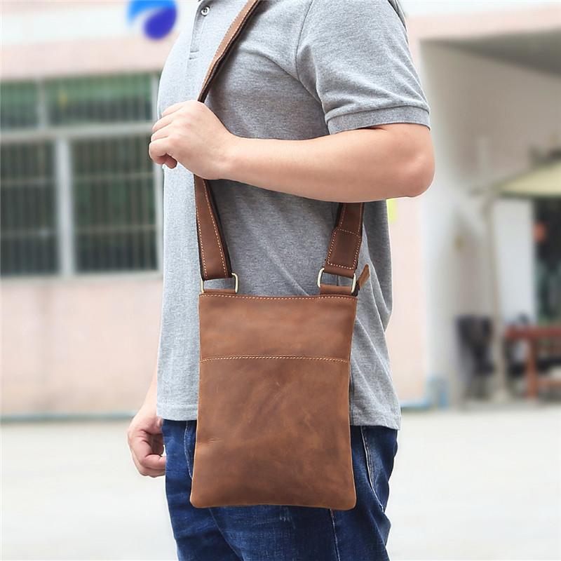 Design: Vintage Brown Leather Men's Small Vertical Side Bag Small Messenger Bag For Men