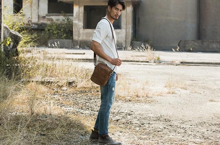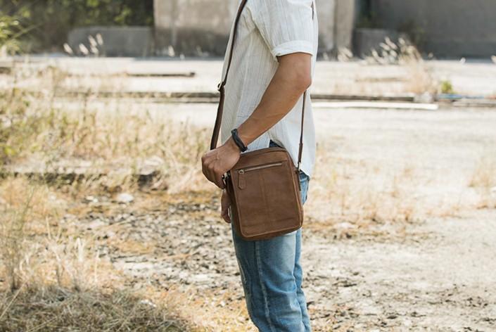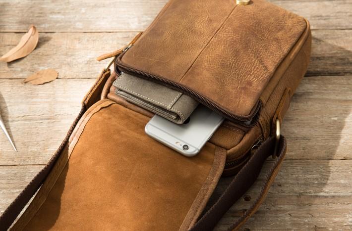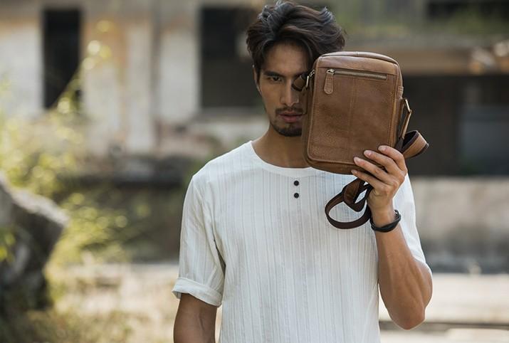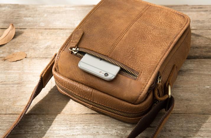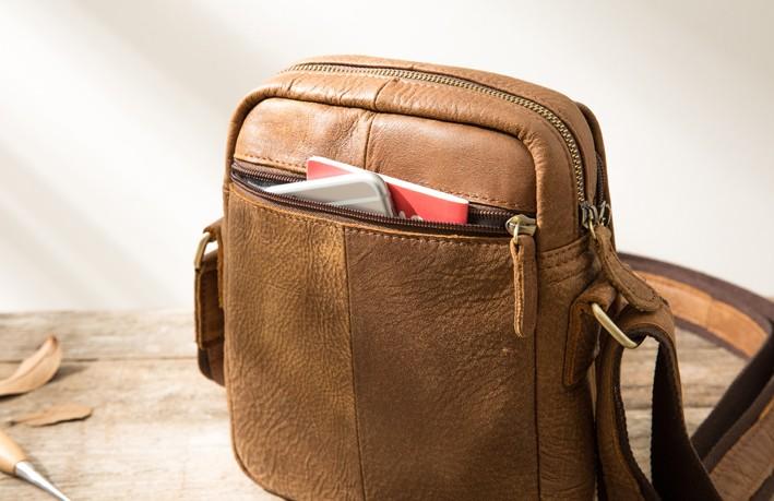 Design: Cool Leather Mens Small Messenger Bags Shoulder Bag for Men