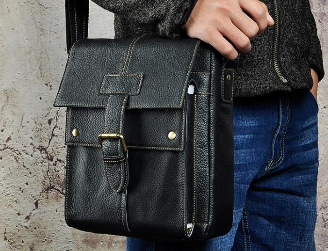 Design: Small Leather Mens SIDE BAG COURIER BAG Messenger Bag Shoulder Bag for Men