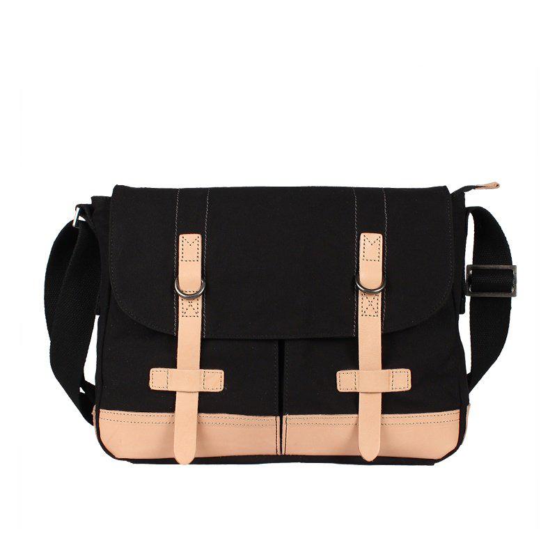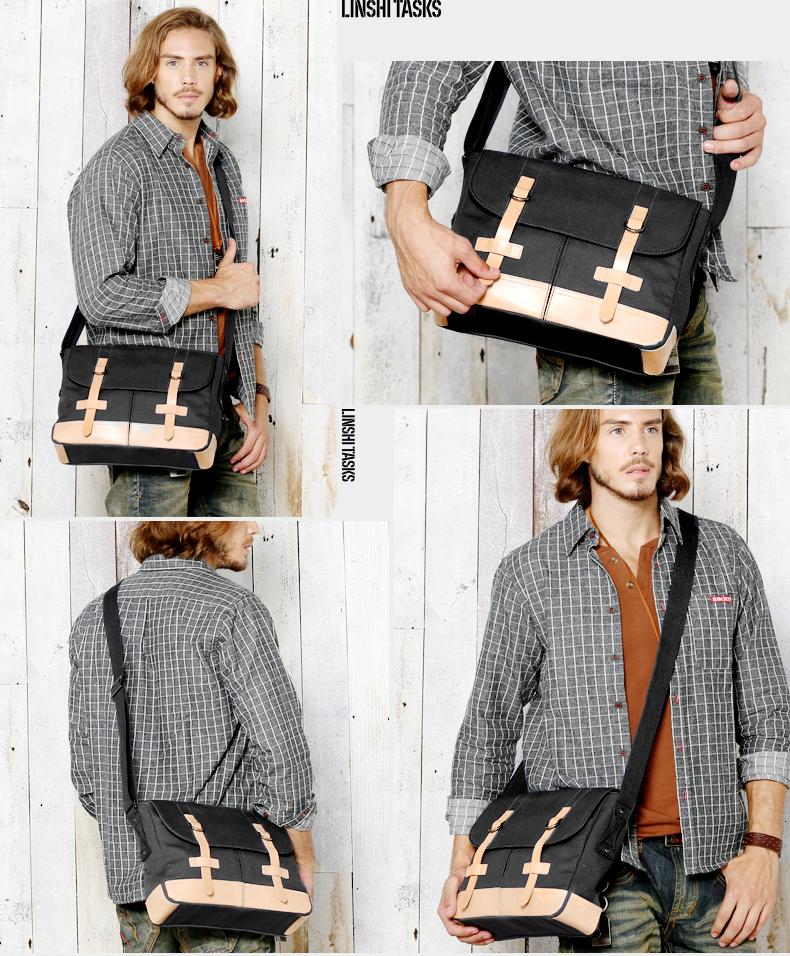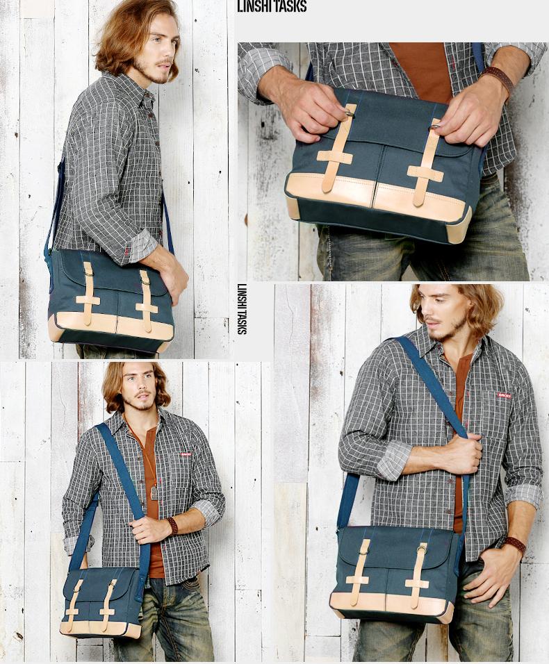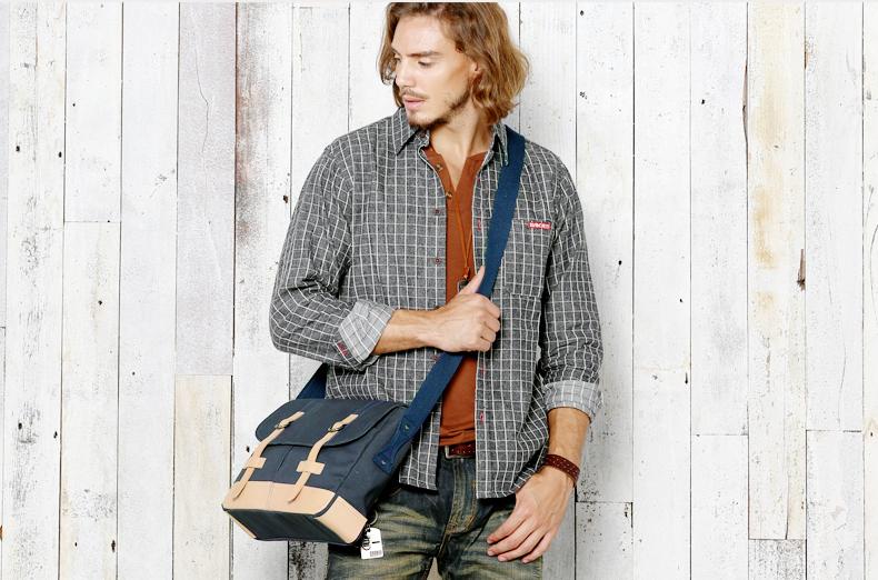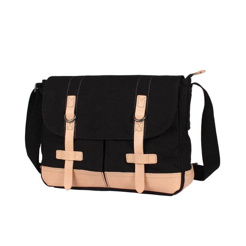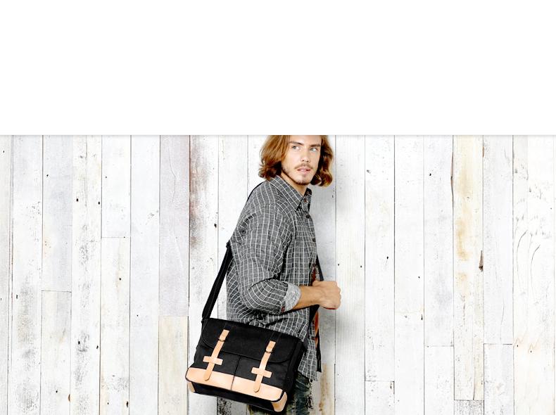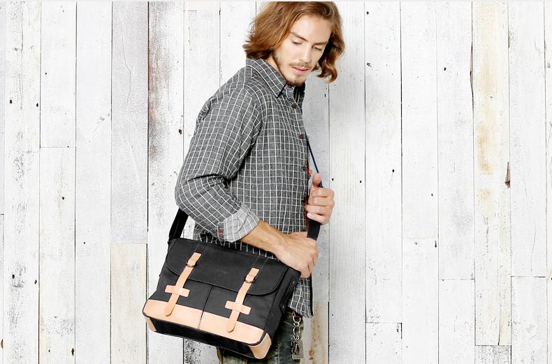 Design: Black Canvas Leather Mens Side Bag Messenger Bags Navy Blue Canvas Courier Bag for Men