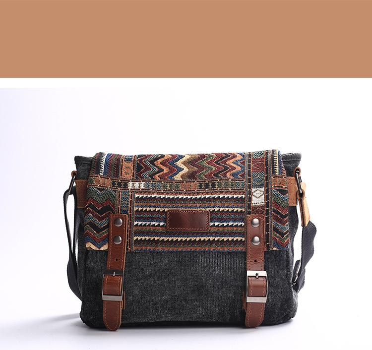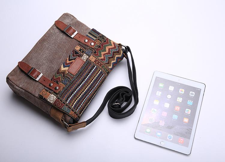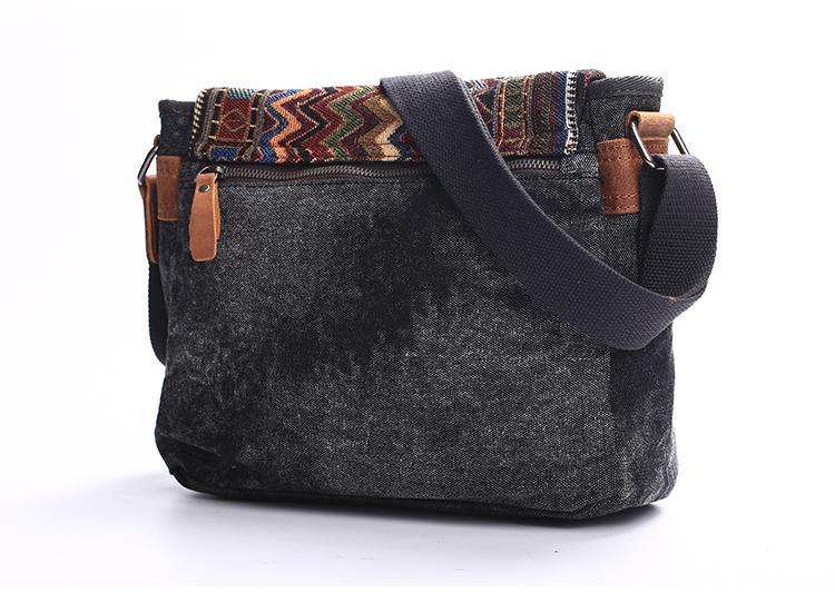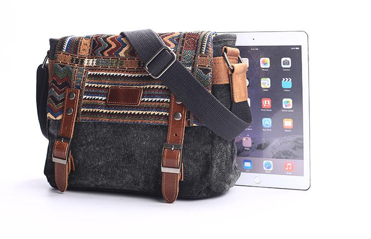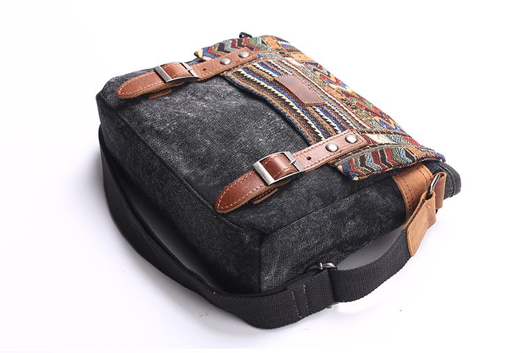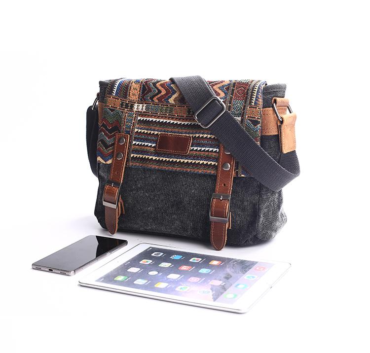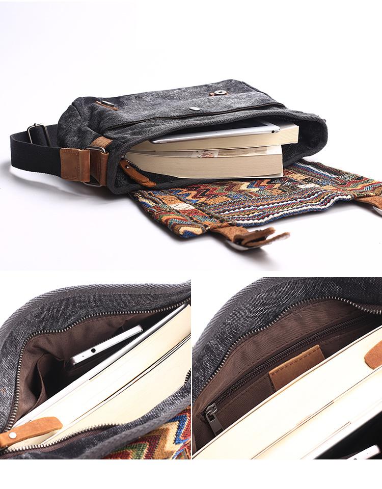 Design: Brown Waxed Canvas Leather Mens Dark Gray Shoulder Bag Small Backpack Messenger Bag for Men