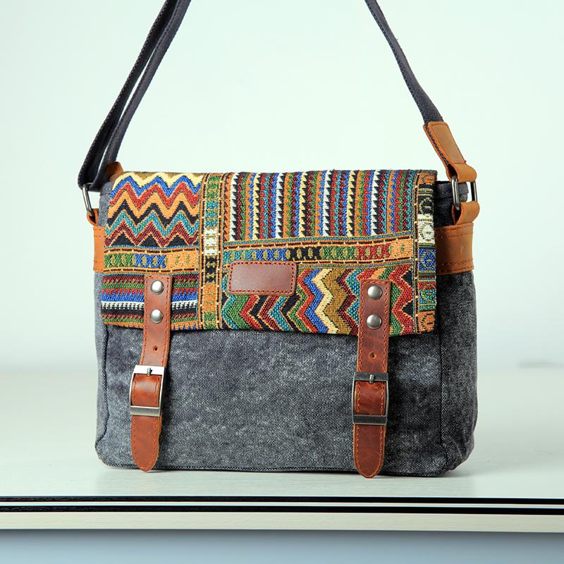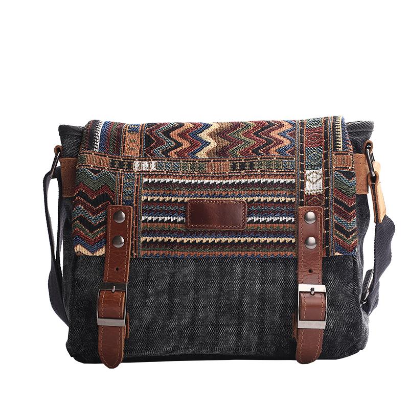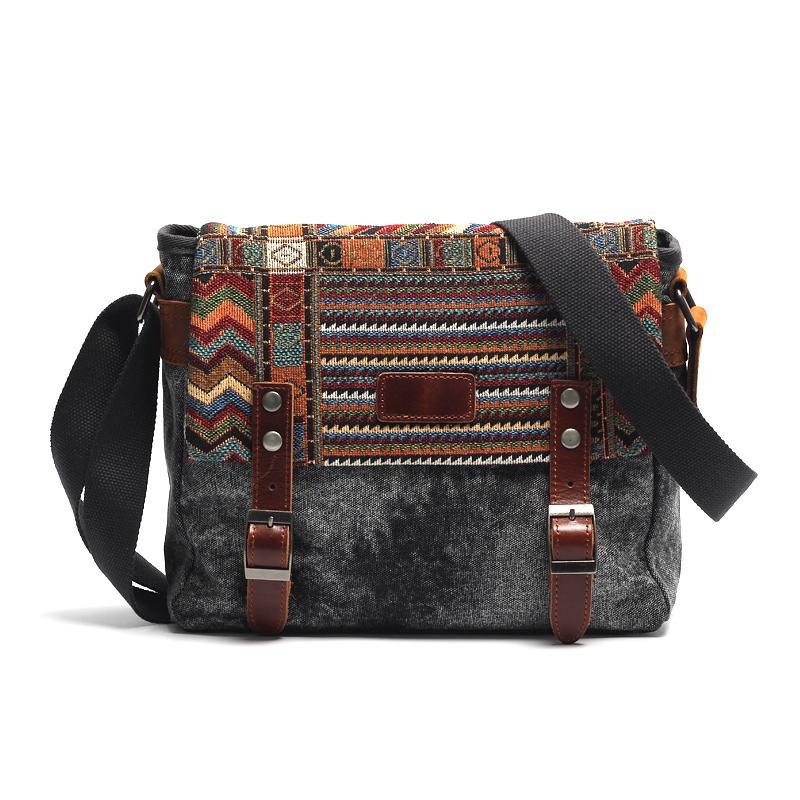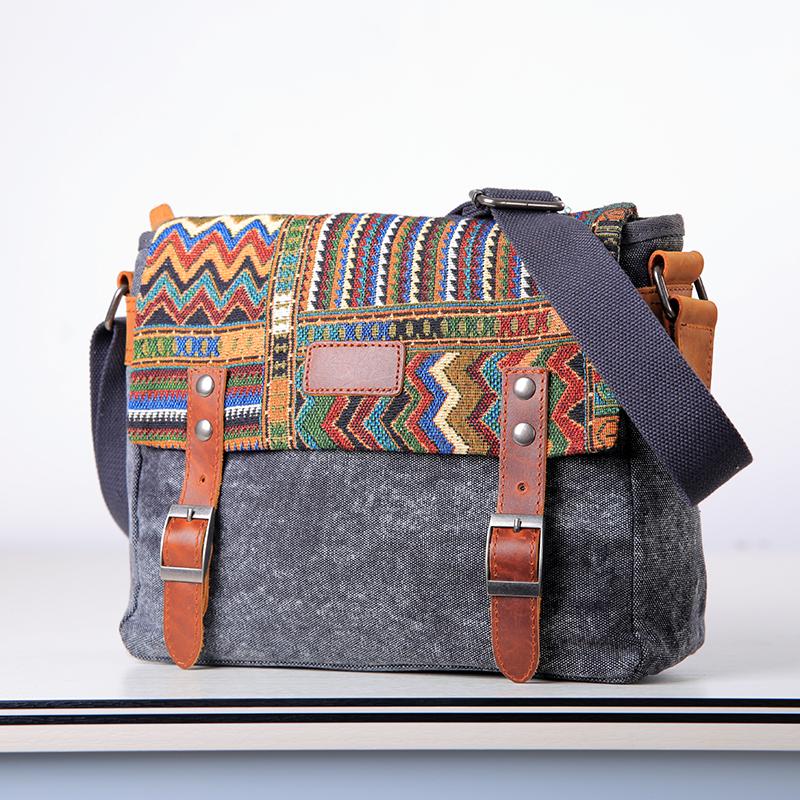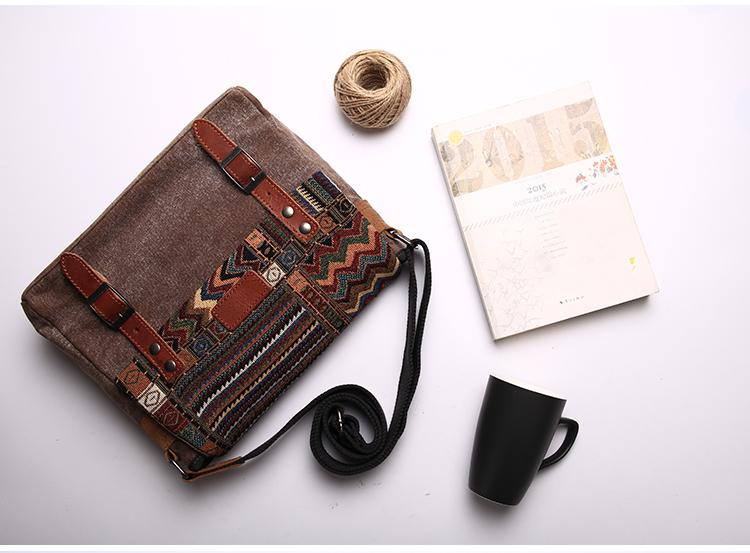 Design: Brown Waxed Canvas Leather Mens Dark Gray Shoulder Bag Small Backpack Messenger Bag for Men
