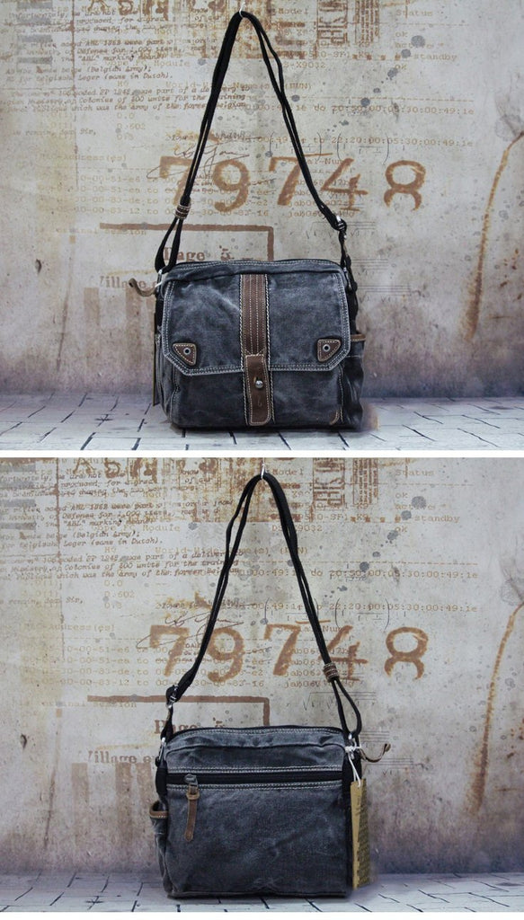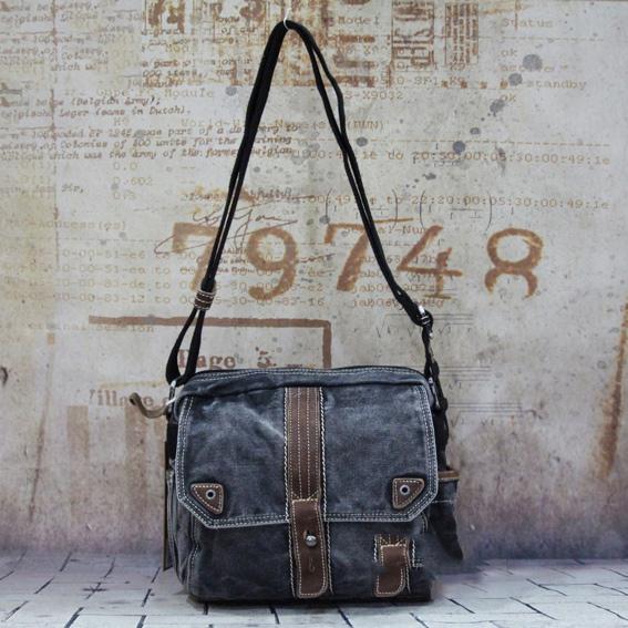 Style: Canvas Black Mens 8 inches Small Horizontal Postman Bag Canvas Messenger Bags Courier Bag For Men