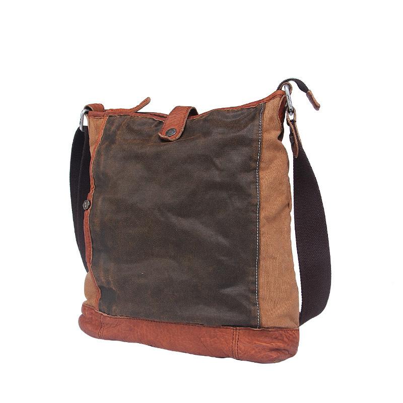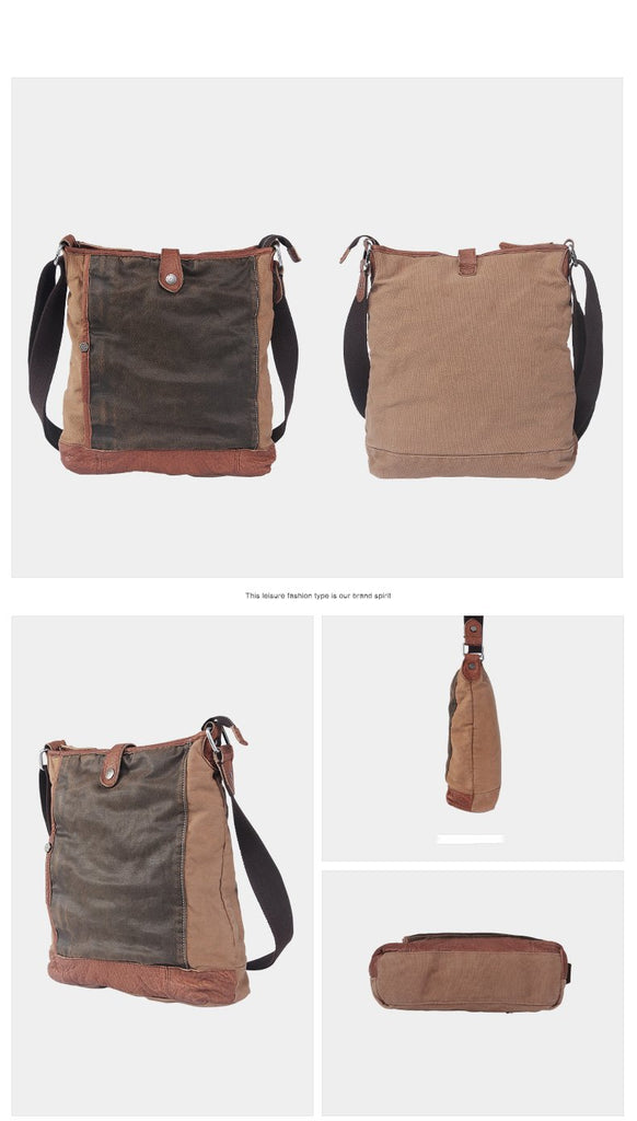 Design: Canvas Leather Mens Distressed Brown Shoulder Bag Messenger Bag Canvas Courier Bag for Men