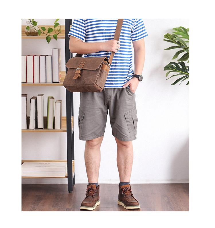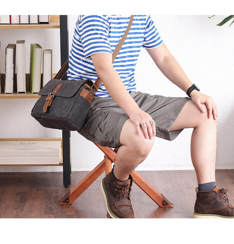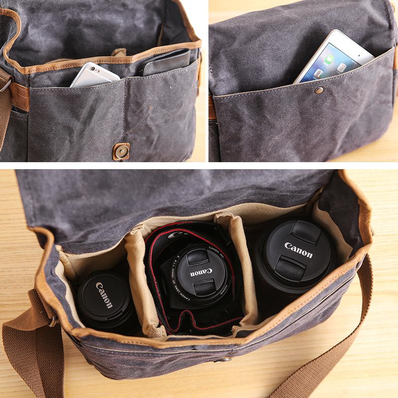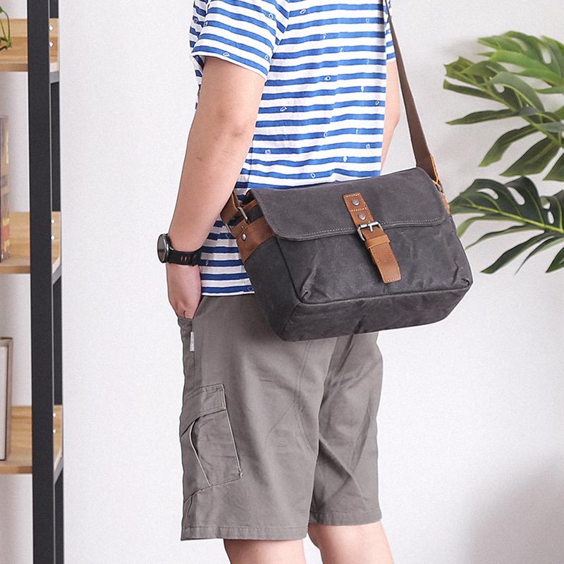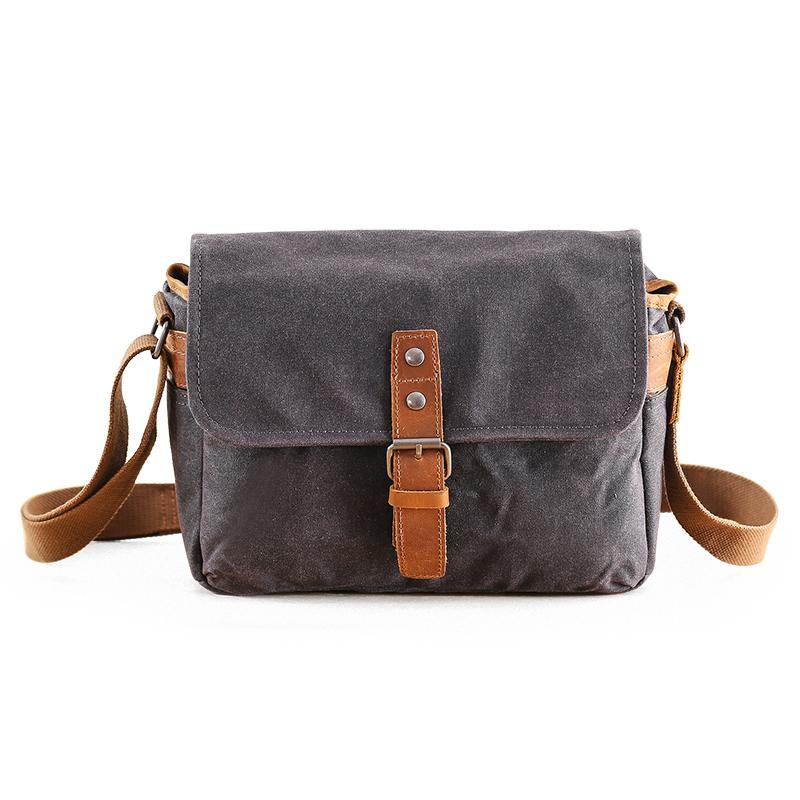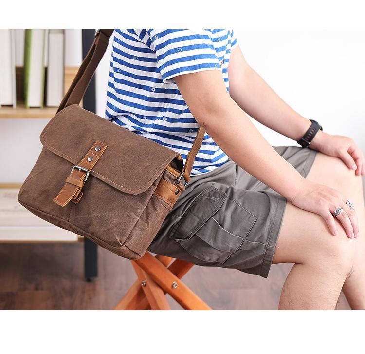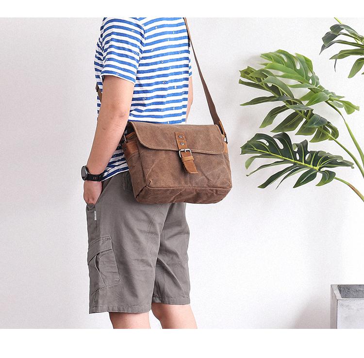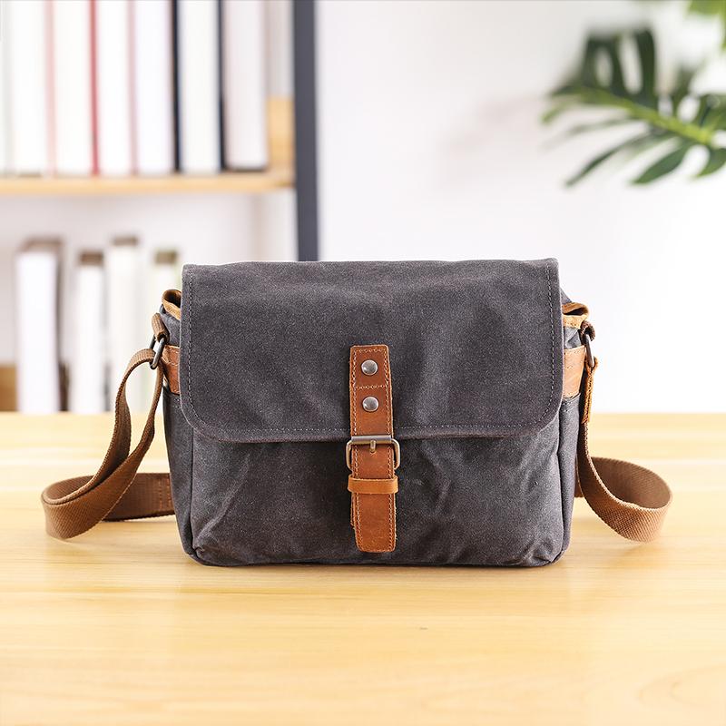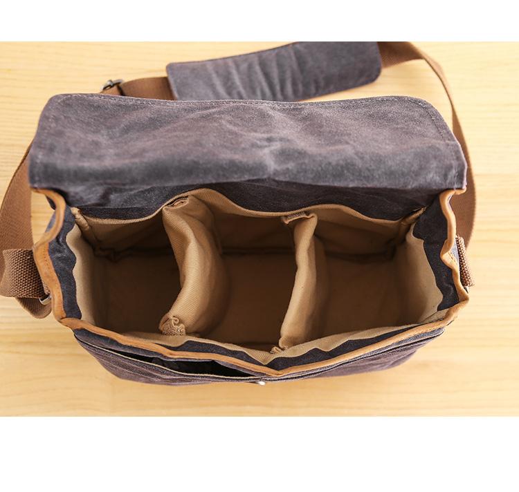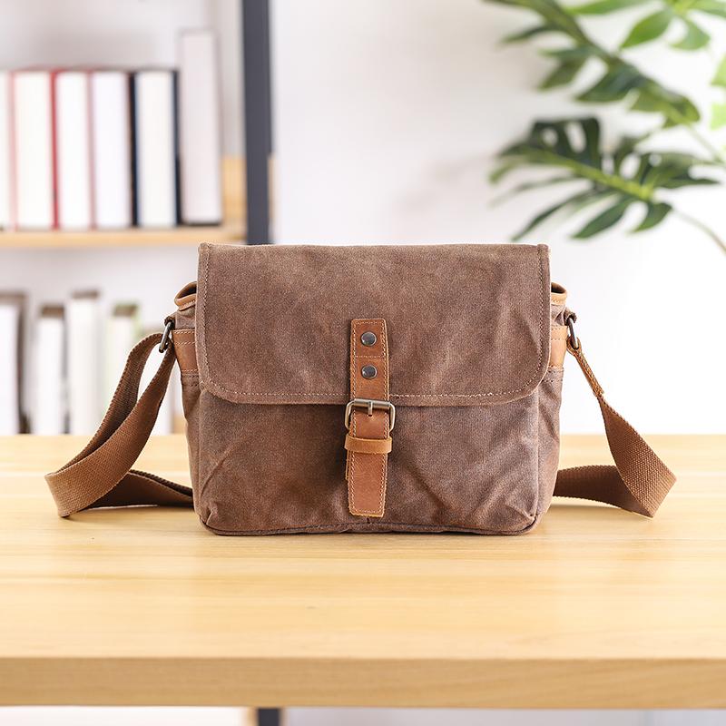 Style: Canvas Leather Mens DSLR Camera Bag Diagonal Shoulder Bag Messenger Bag for Men