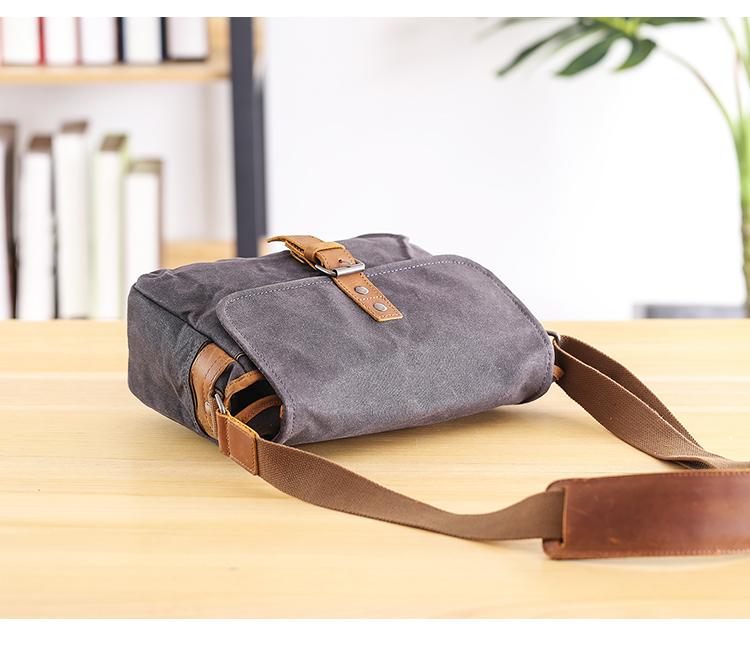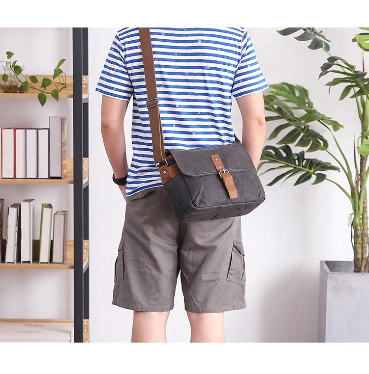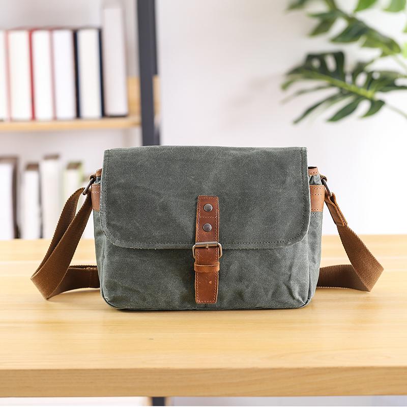Design: Canvas Leather Mens DSLR Camera Bag Side Bag Green Small Messenger Bag for Men