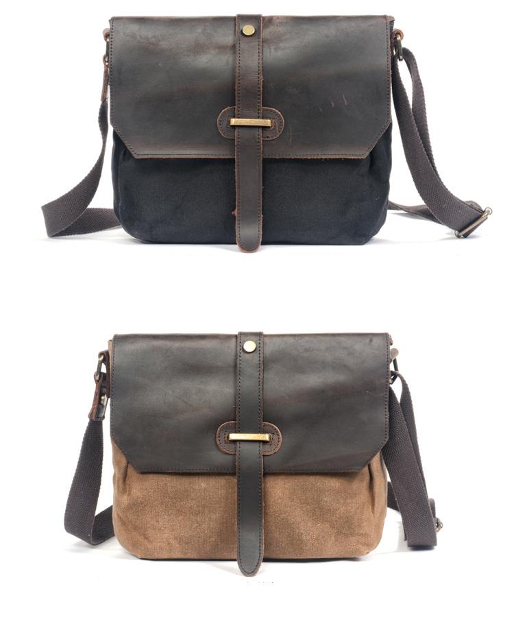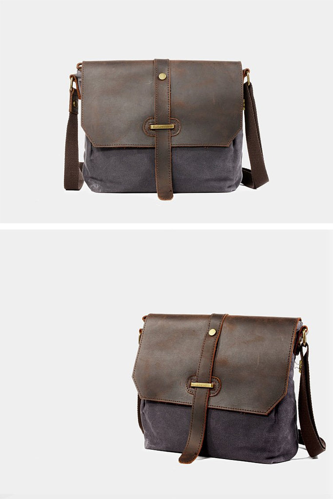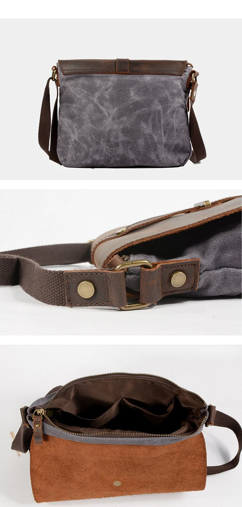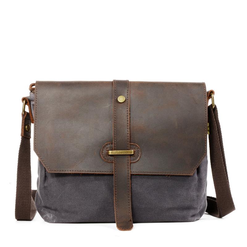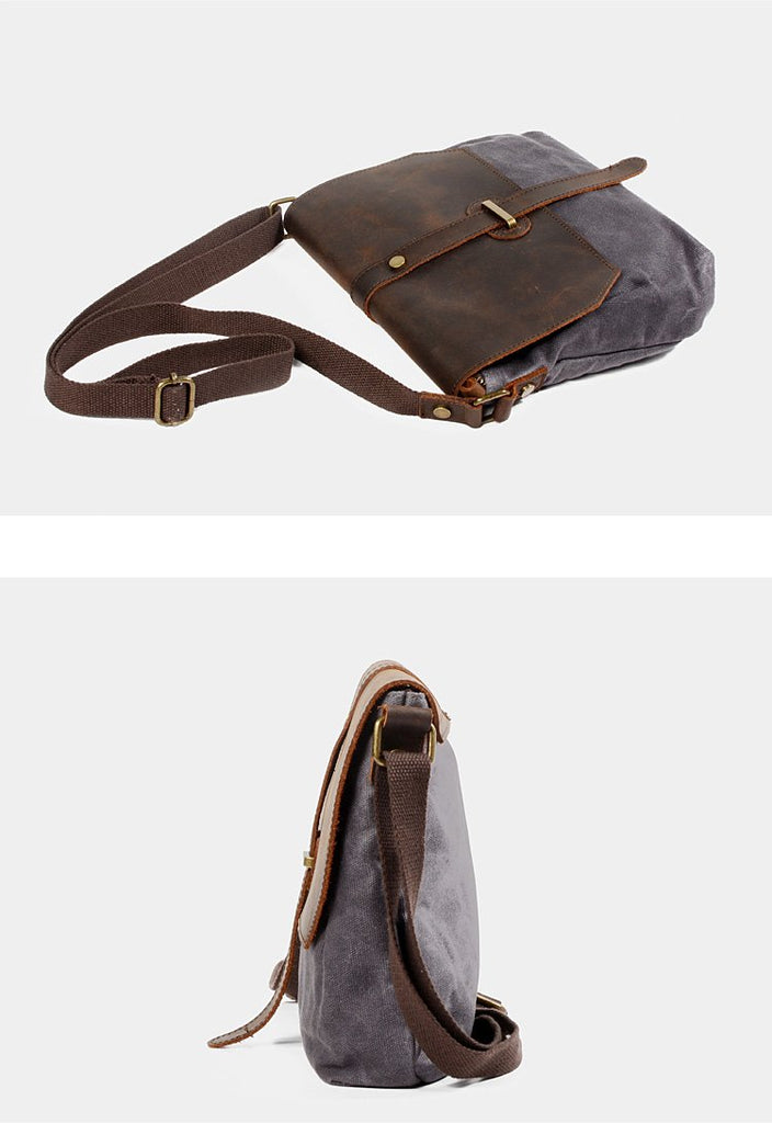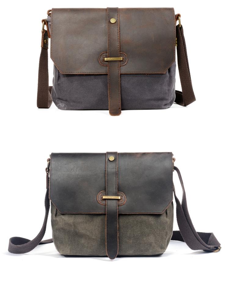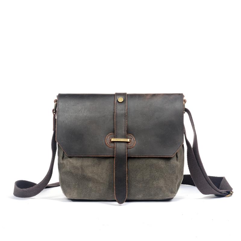 Design: Waxed Canvas Leather Gray Mens Small Side Bag Green Shoulder Bag Messenger Bag For Men