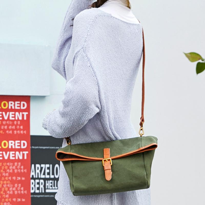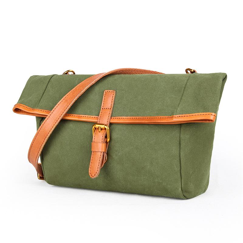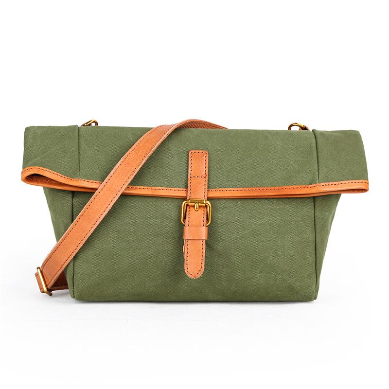 Design: Canvas Leather Mens Small Brown Messenger Bag Shoulder Bag Army Green Diagonal Bag for Men