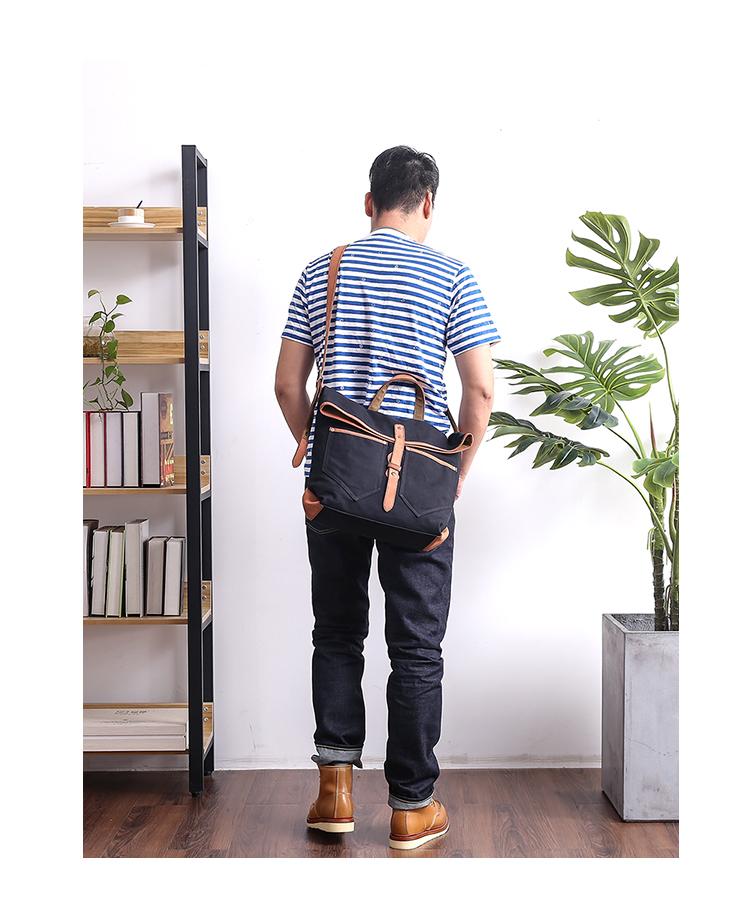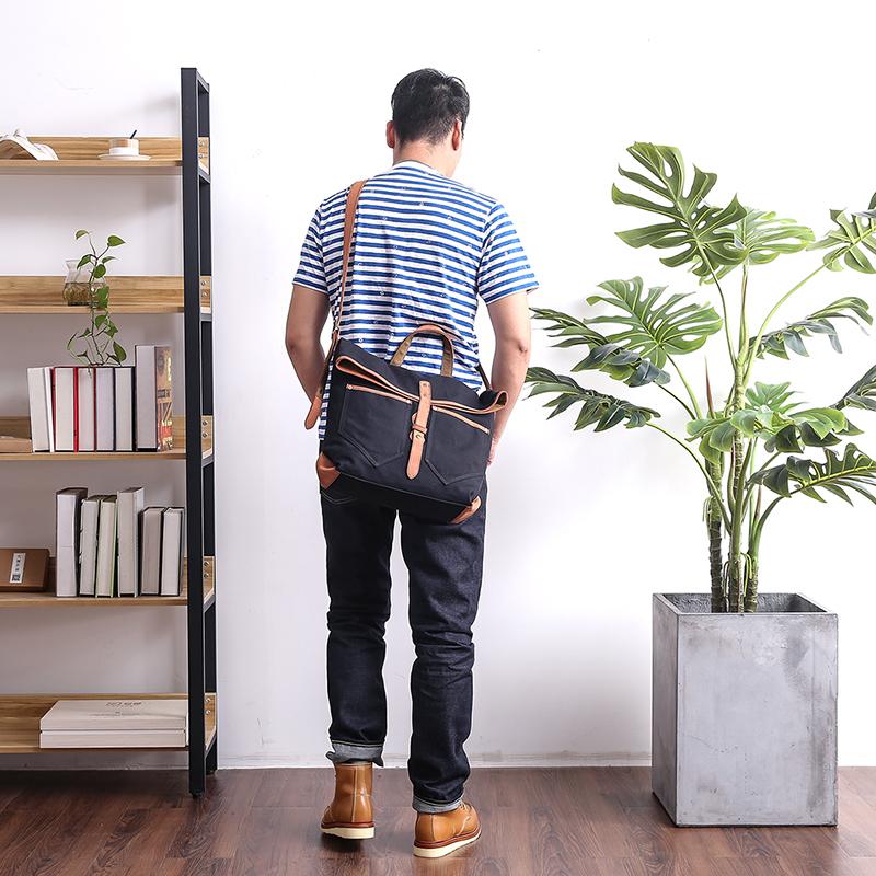 Design: Canvas Leather Mens Large Yellow Side Bag Courier Bag Messenger Bag Black Shoulder Bag for Men
