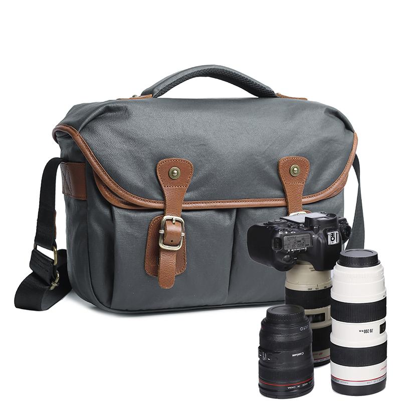 Style: Canvas Leather Mens Waterproof Army Green CANON CAMERA Khaki Messenger Bag NIKON CAMERA Side BAG DSLR CAMERA BAG