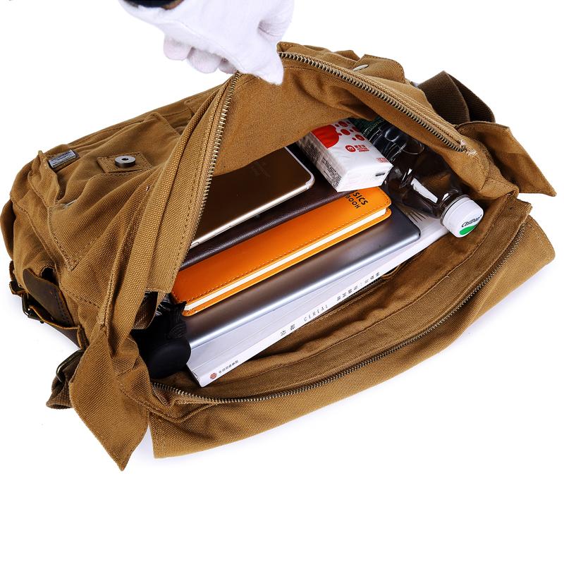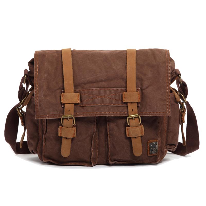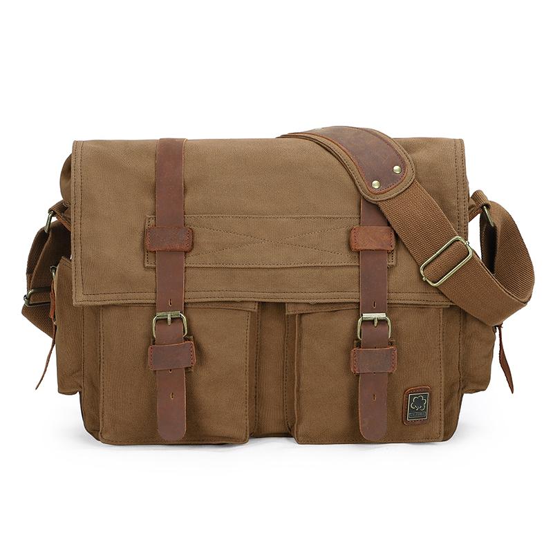 Style: Canvas Leather Women Mens Blue Business Messenger Bag Khaki Side Bag Brown Shoulder Bag For Men