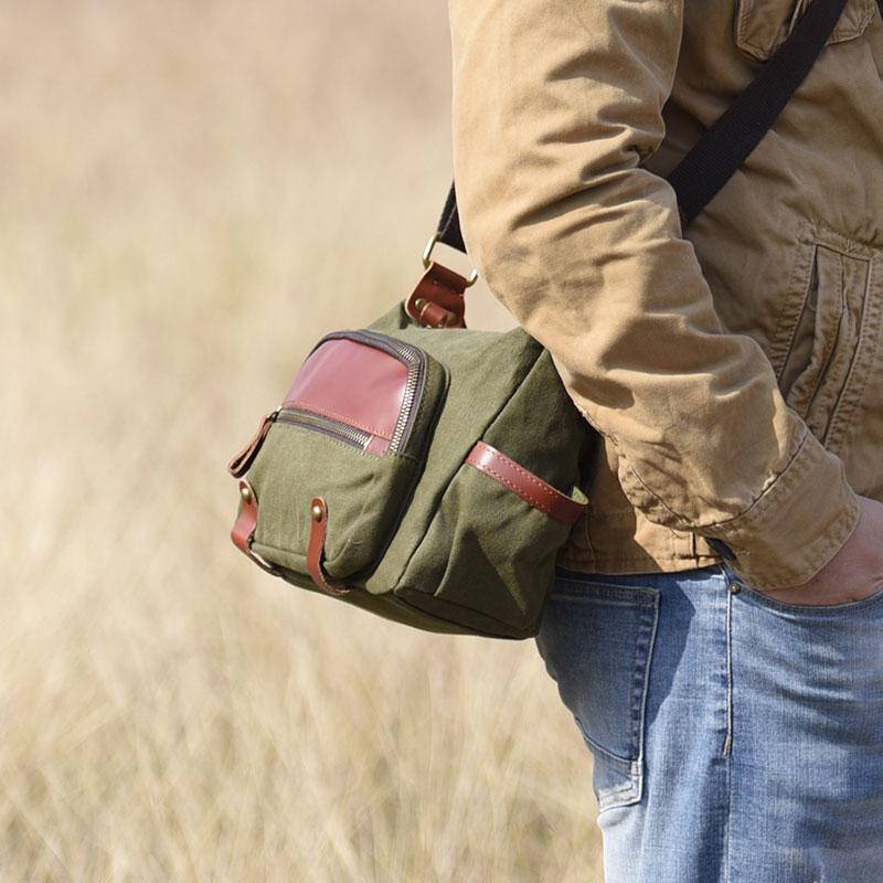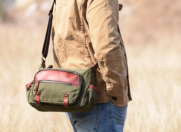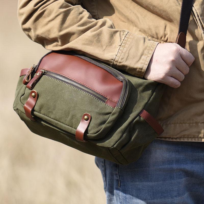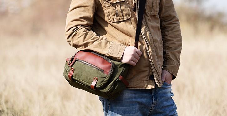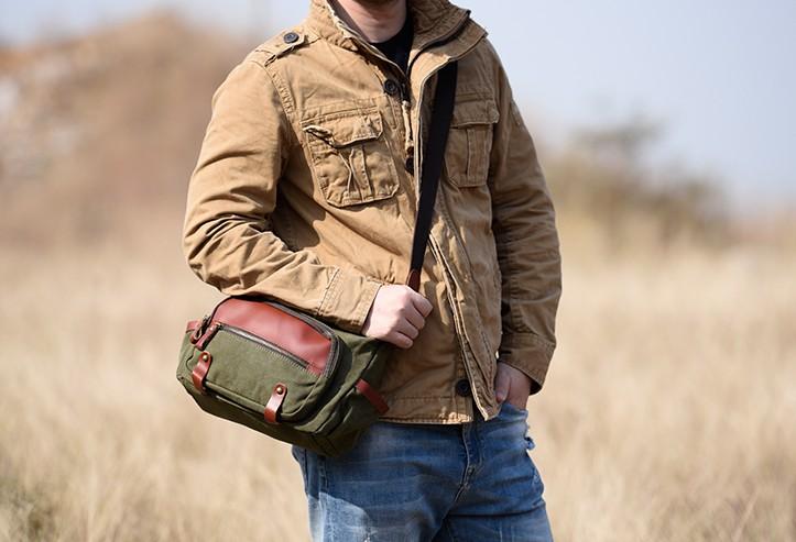 Style: Canvas Mens Cool Small Messenger Bag iPad Bag Chest Bag Bike Bag Cycling Bag for men