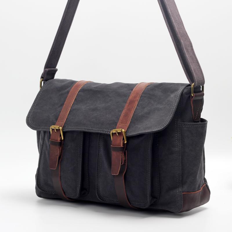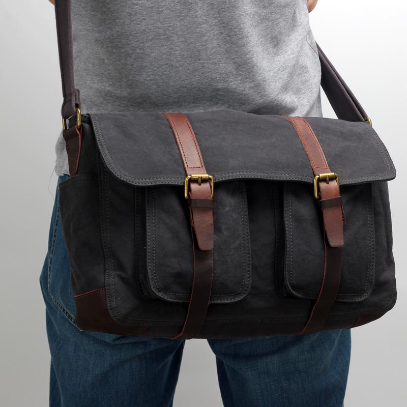 Style: Canvas Mens Shoulder Bag Black Large Travel Bag Postman Bag Messenger Bag for Men