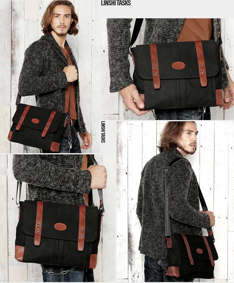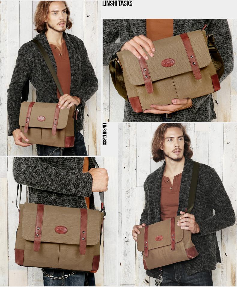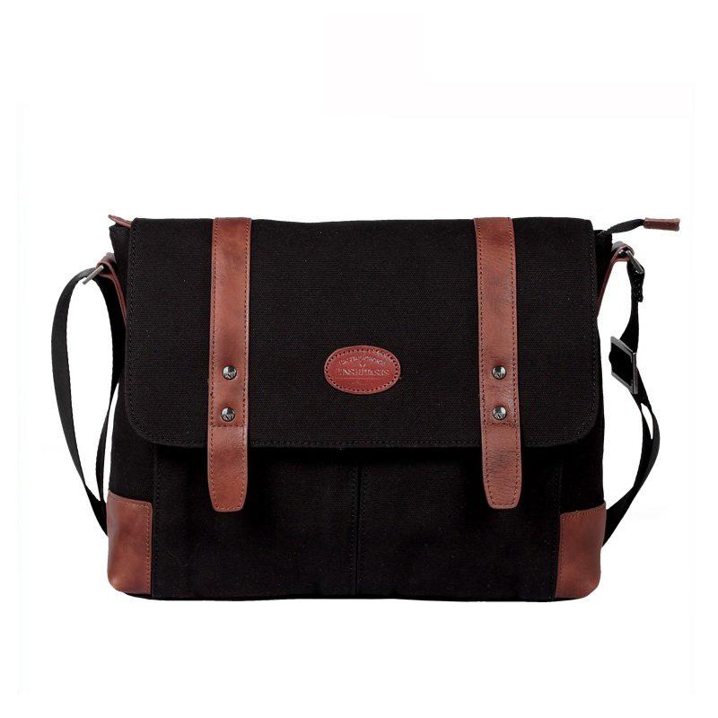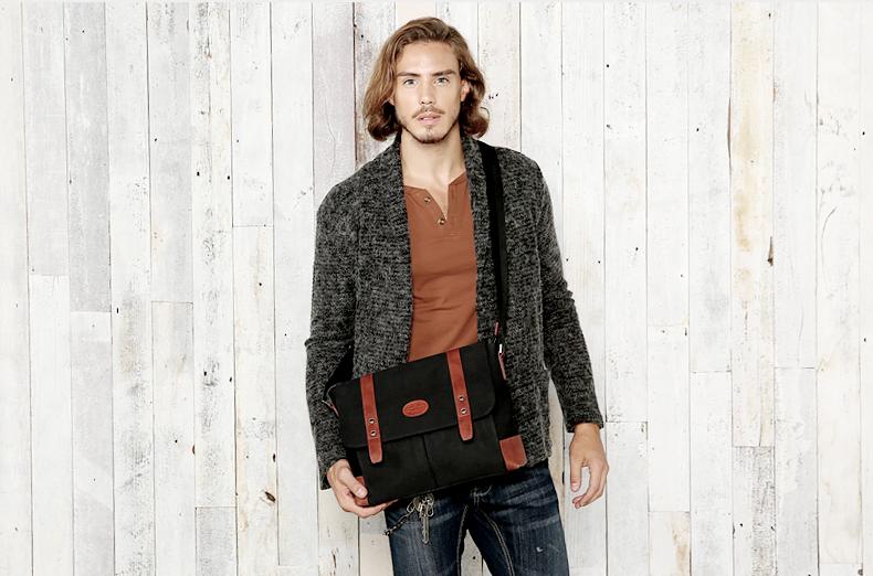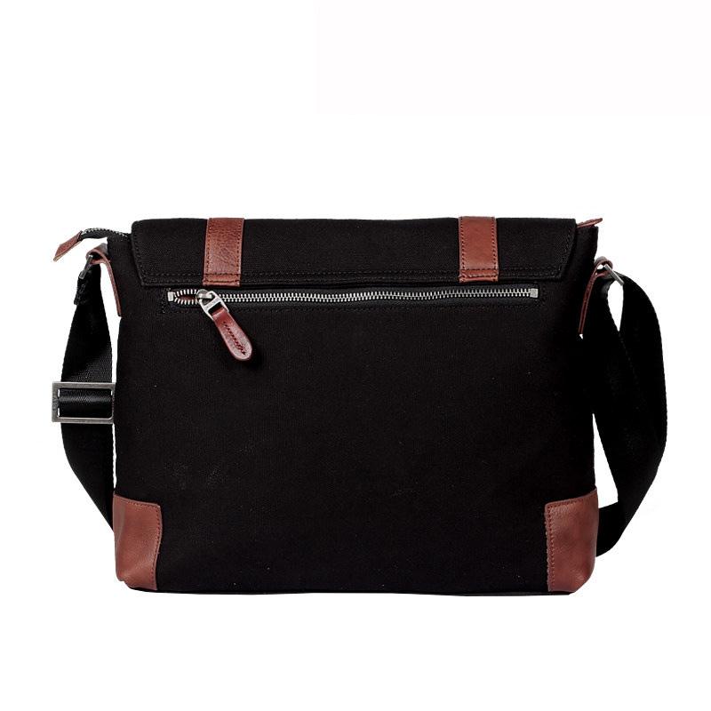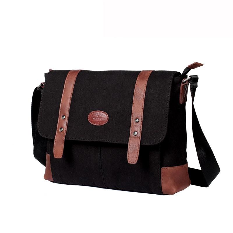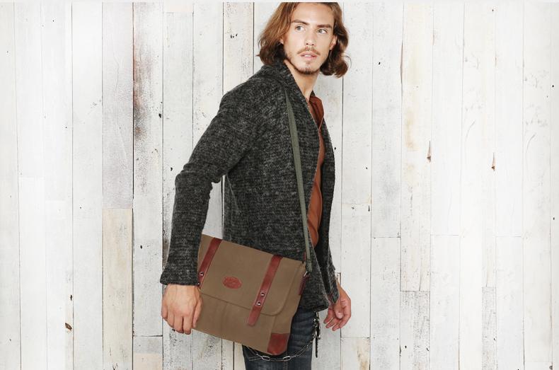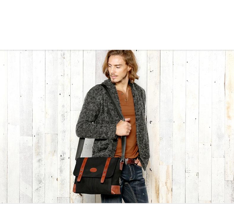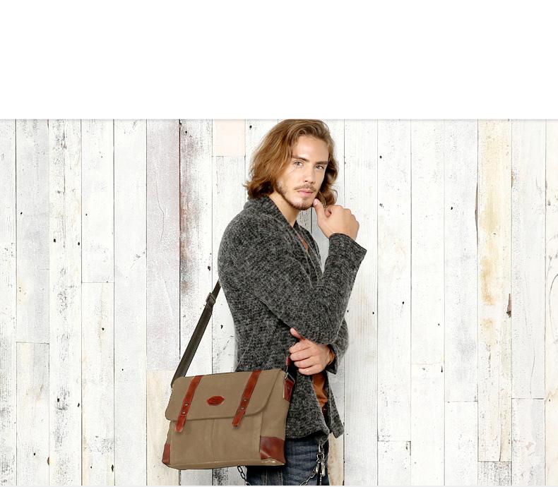Design: Casual Waxed Canvas Leather Mens Light Brown Side Bag Messenger Bags Black Waxed Canvas Courier Bag for Men