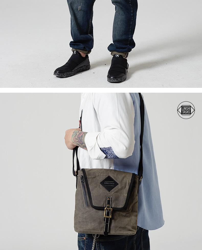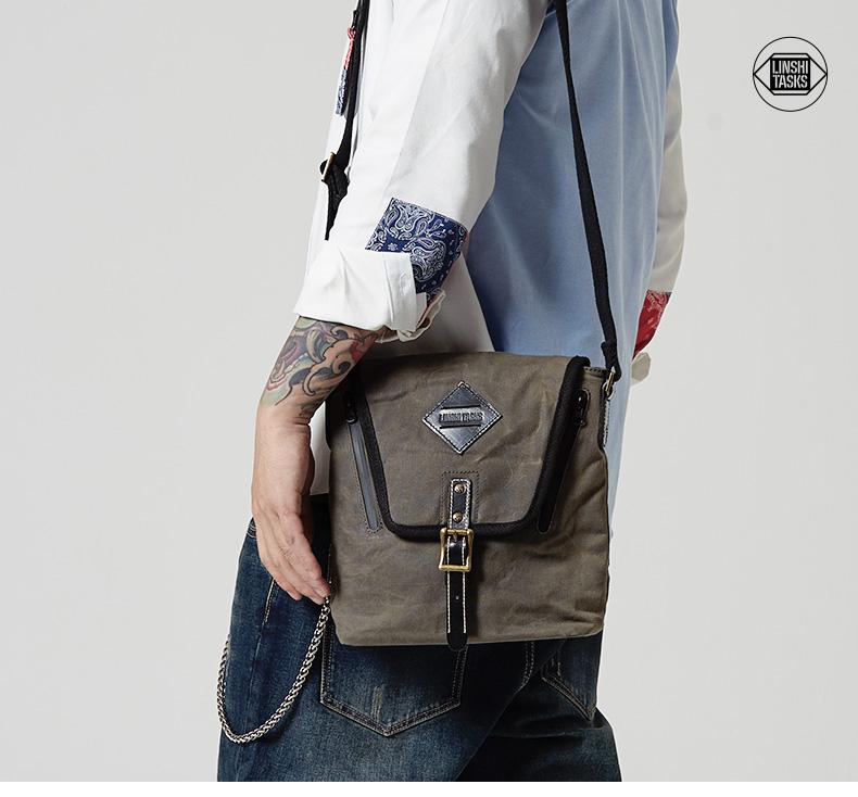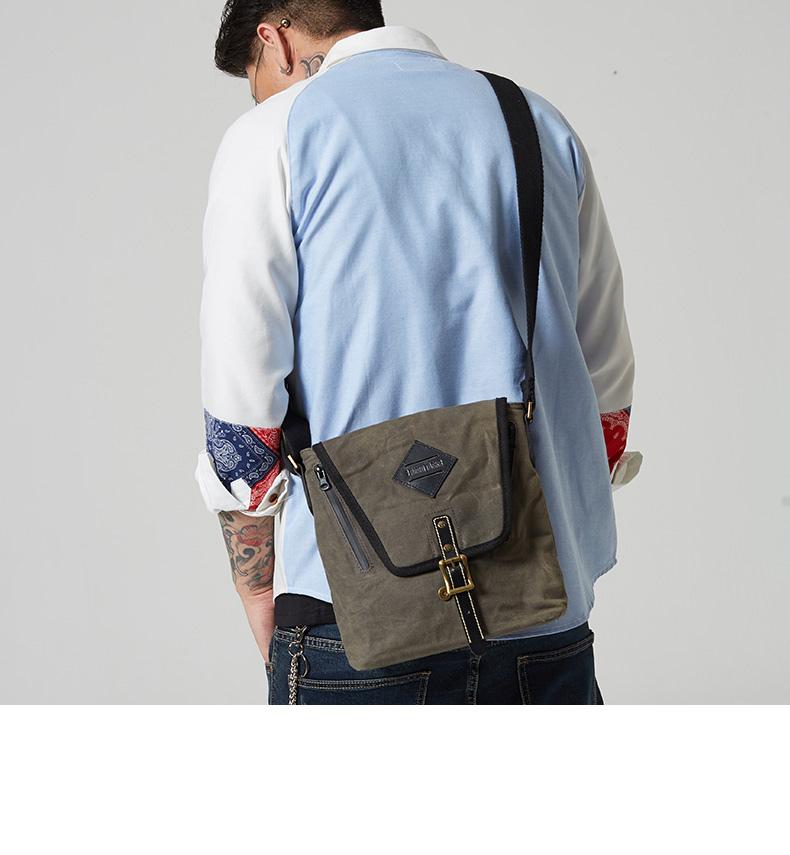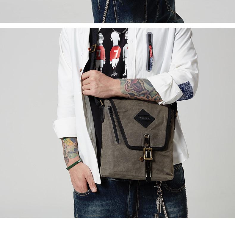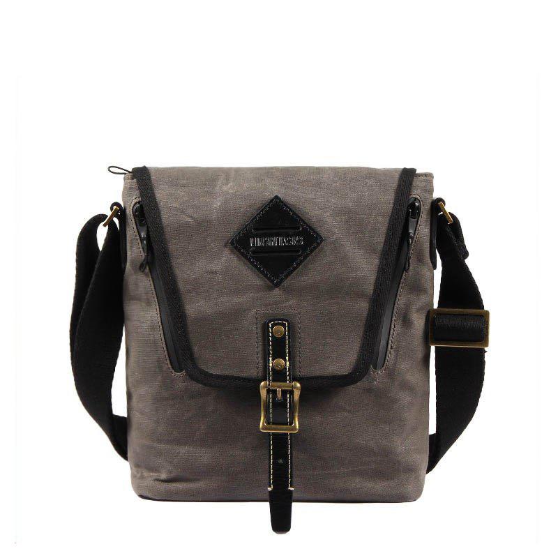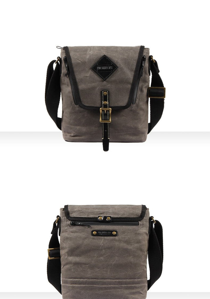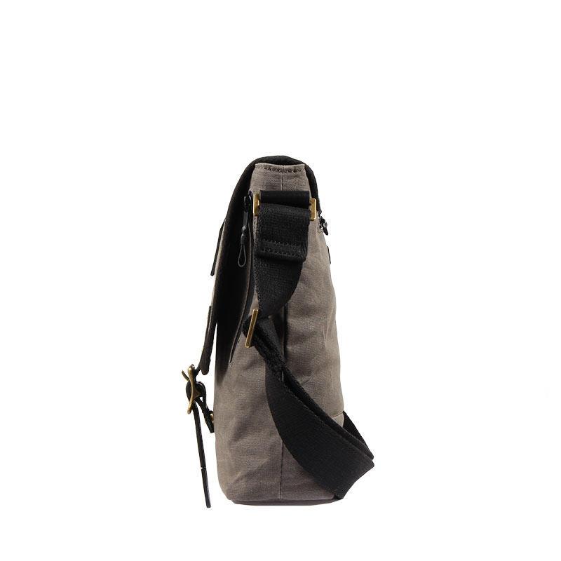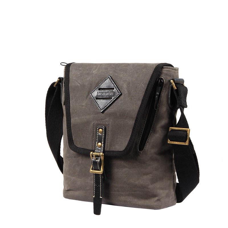 Design: Casual Waxed Canvas Leather Mens Light Gray Side Bag Messenger Bags Waxed Canvas Courier Bag for Men