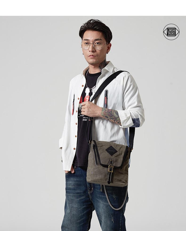 Style: Casual Waxed Canvas Leather Mens Light Gray Side Bag Messenger Bags Waxed Canvas Courier Bag for Men