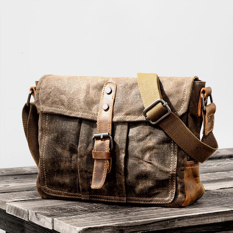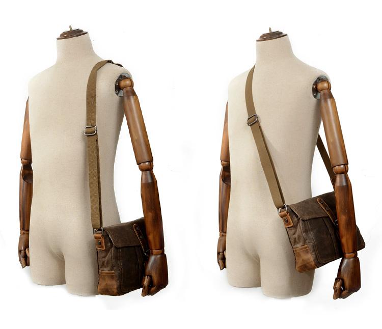 Design: Cool Canvas Leather Mens Casual Motorcycle Shoulder Bag Messenger Bag Backpack For Men