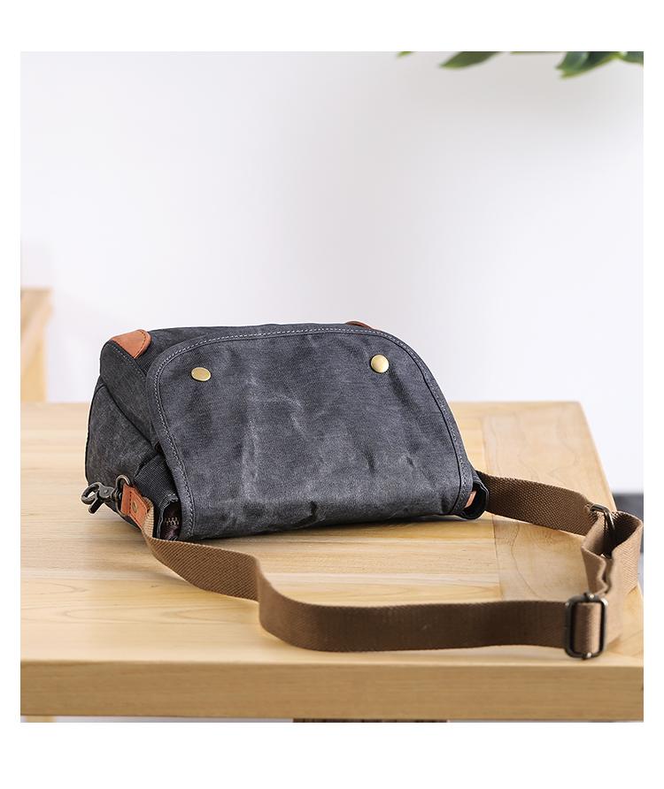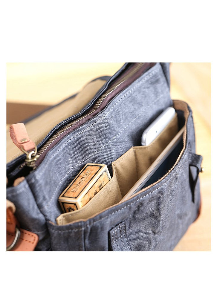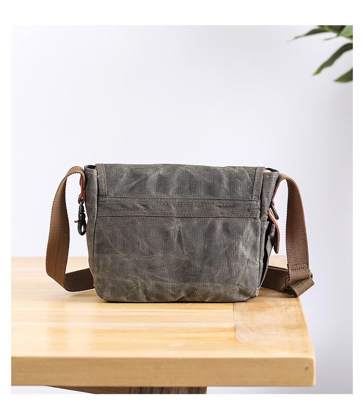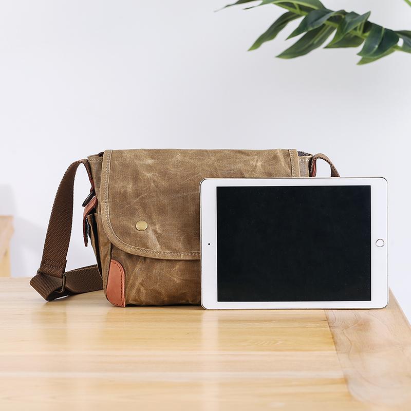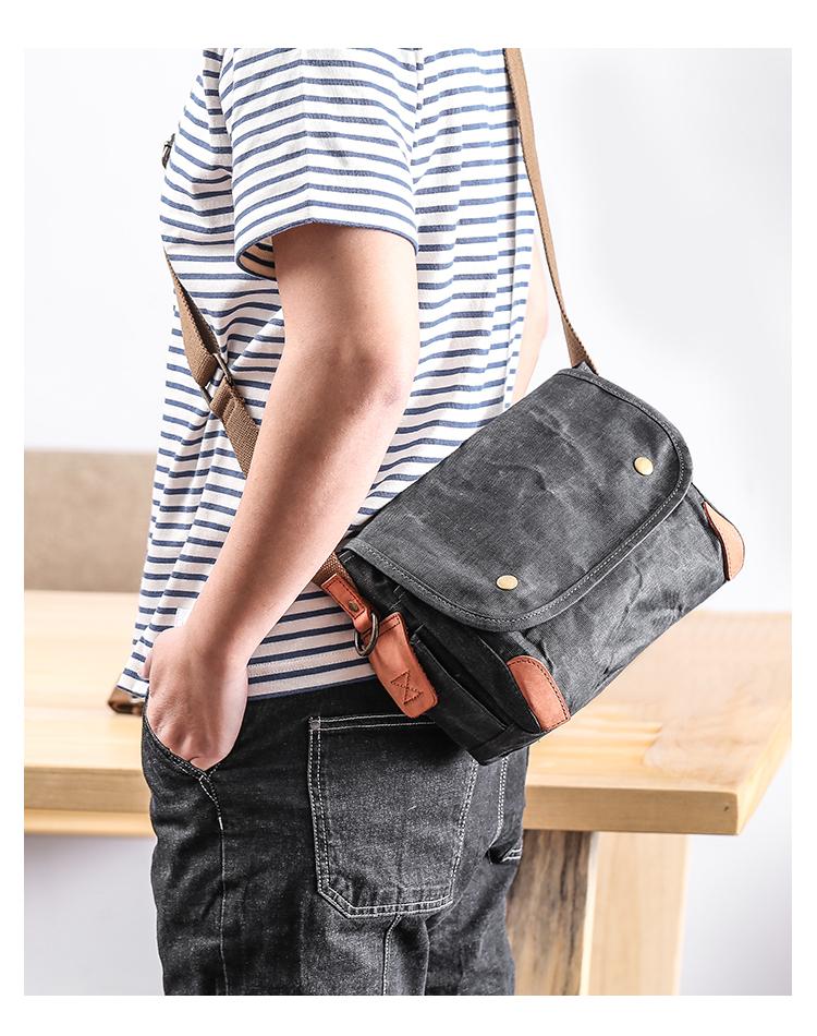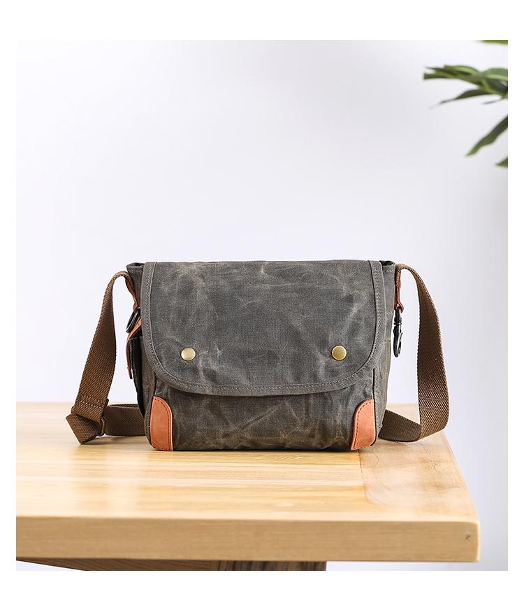 Design: Wax Canvas Leather Mens 10'' Gray Side Bag Courier Bag Khaki Messenger Bag for Men