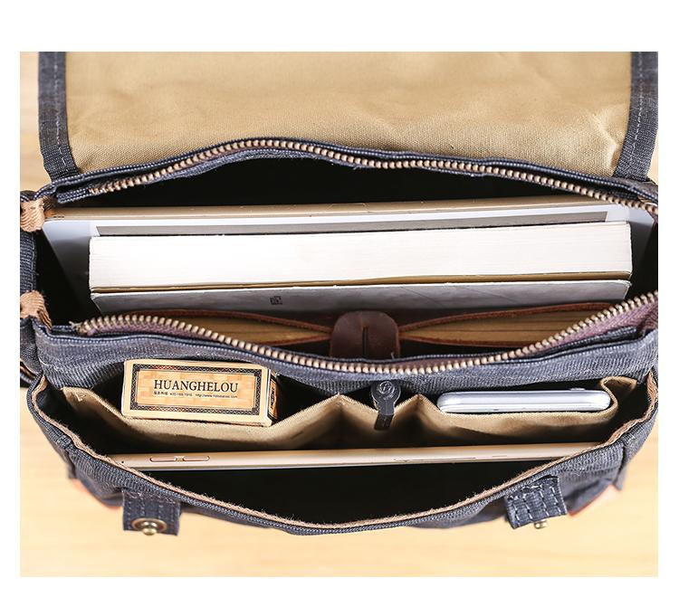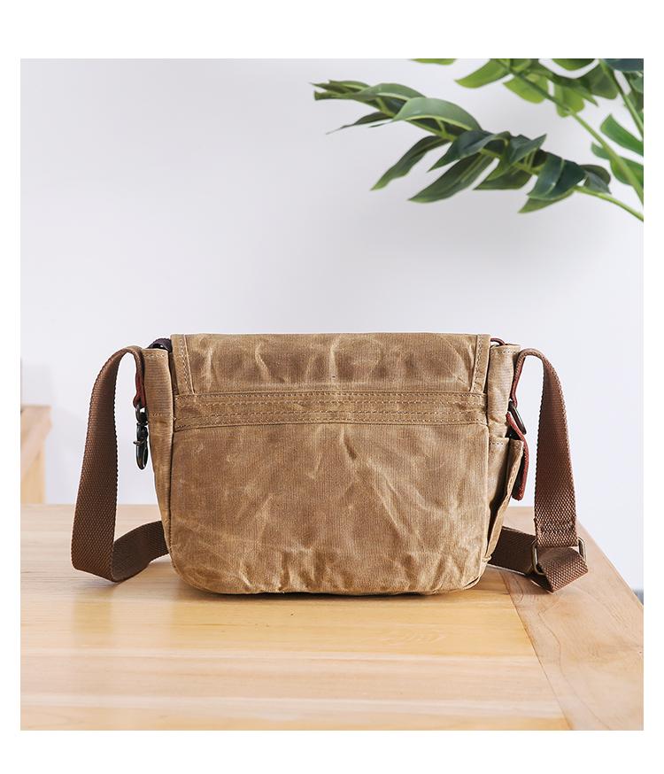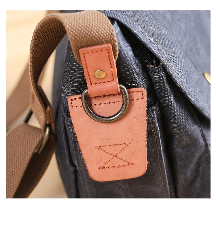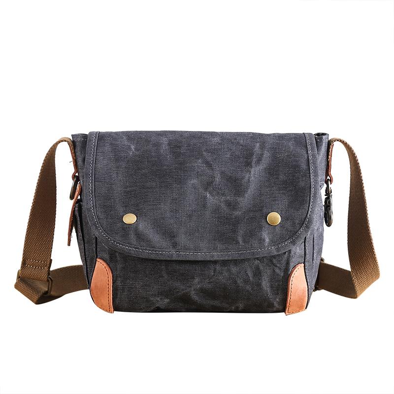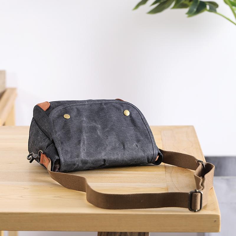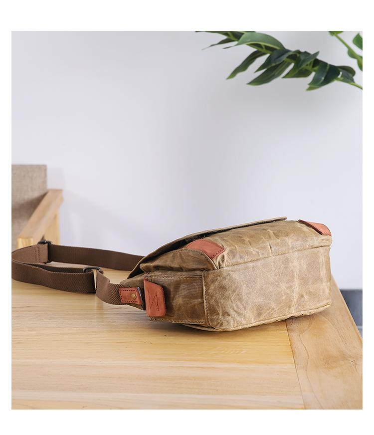 Design: Wax Canvas Leather Mens 10'' Gray Side Bag Courier Bag Khaki Messenger Bag for Men