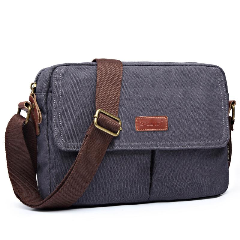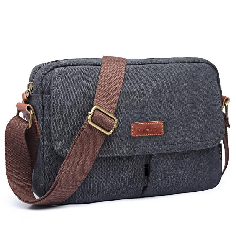 Design: Cool Canvas Leather Mens Retro Tablet Bag Shoulder Bag College Bag Messenger Bag for Men