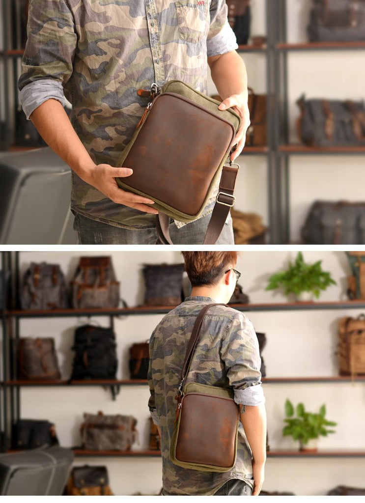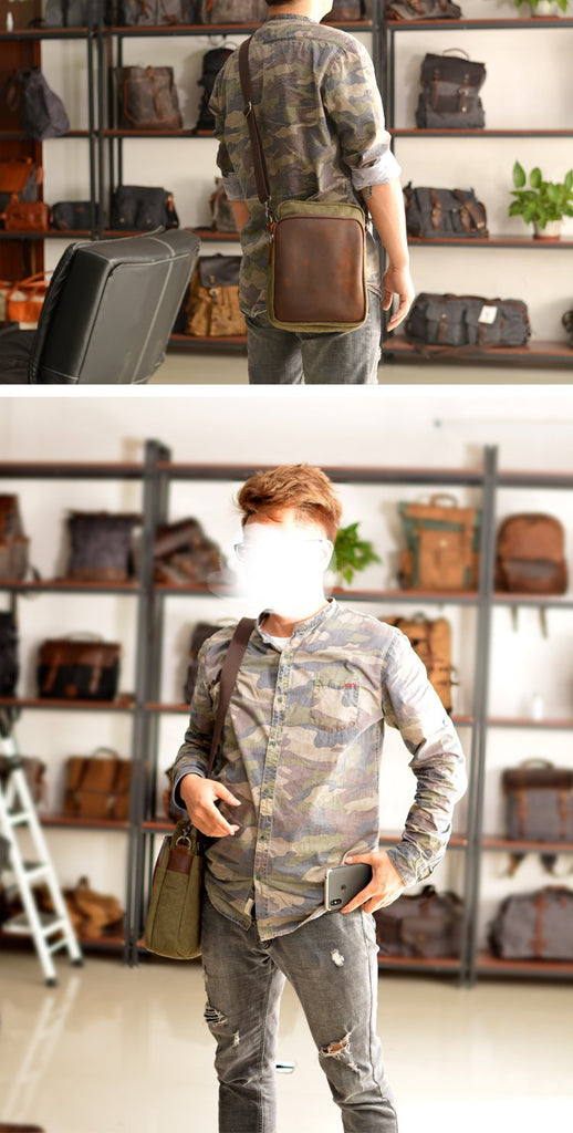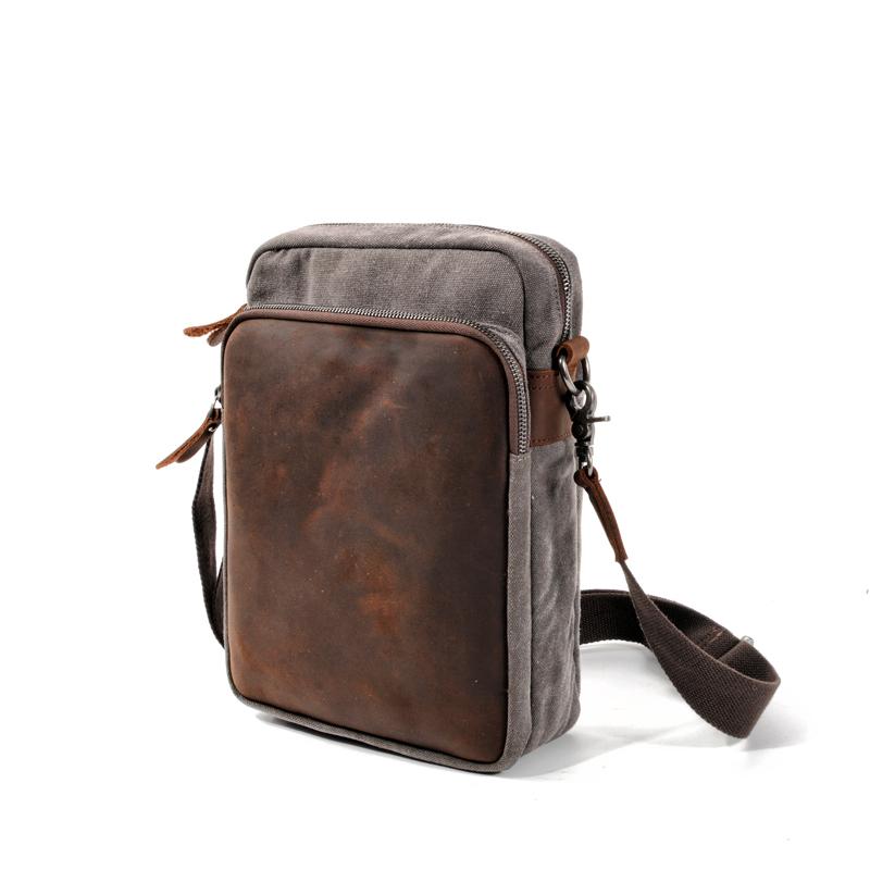 Style: Cool Canvas Leather Mens Side Bag Black Shoulder Bag Multi- Function Messenger Bag for Men