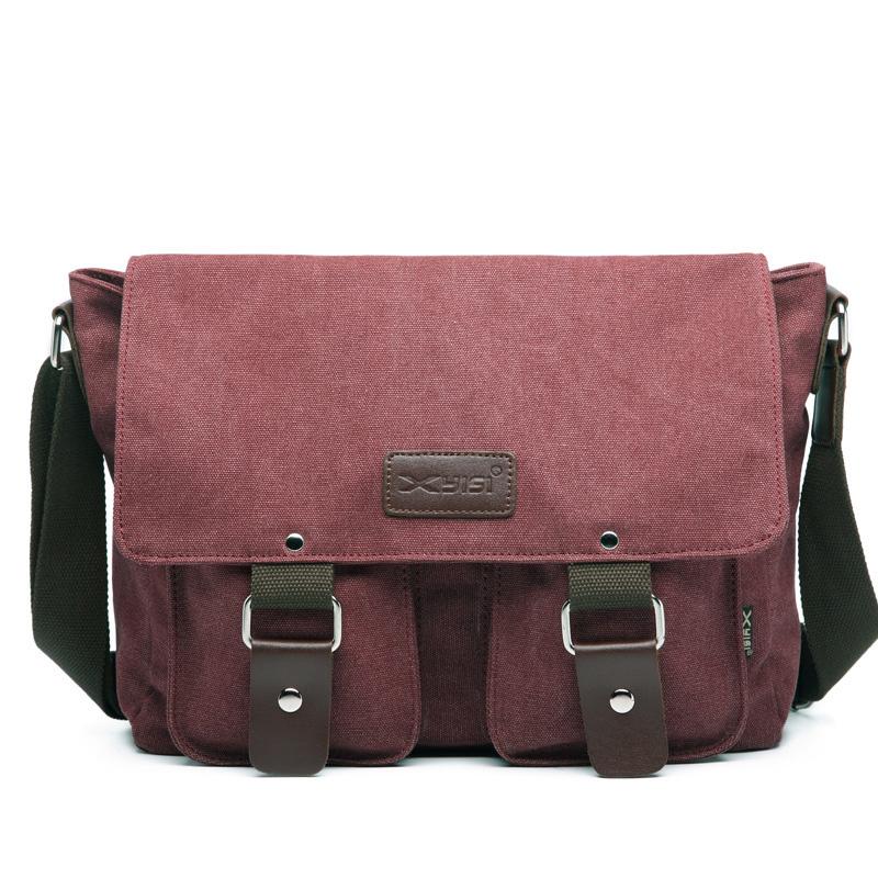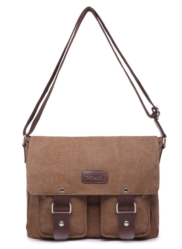 Style: Cool Canvas Leather Mens Simple Casual Bag Shoulder Bag College Bag Messenger Bag for Men