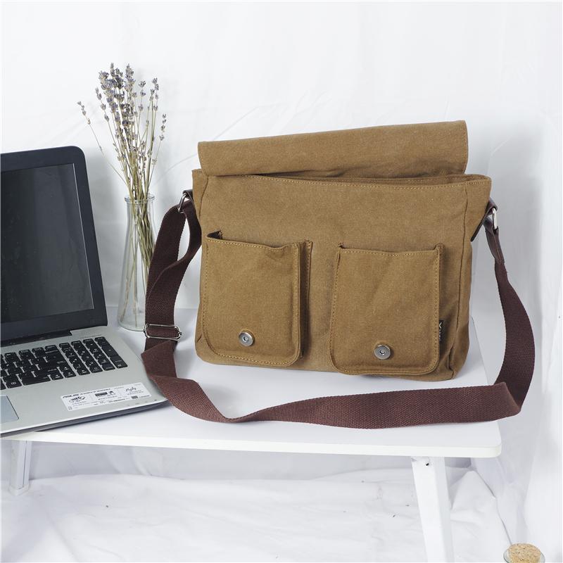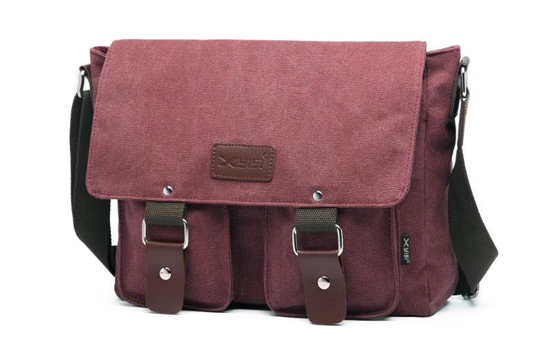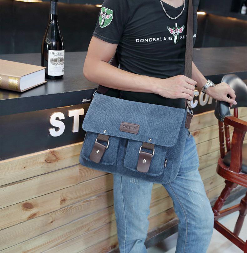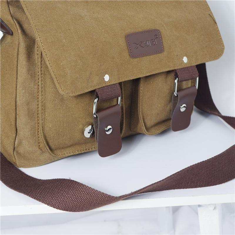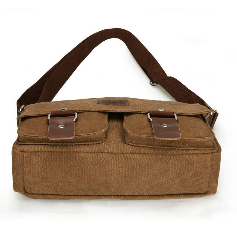Design: Cool Canvas Leather Mens Simple Casual Bag Shoulder Bag College Bag Messenger Bag for Men