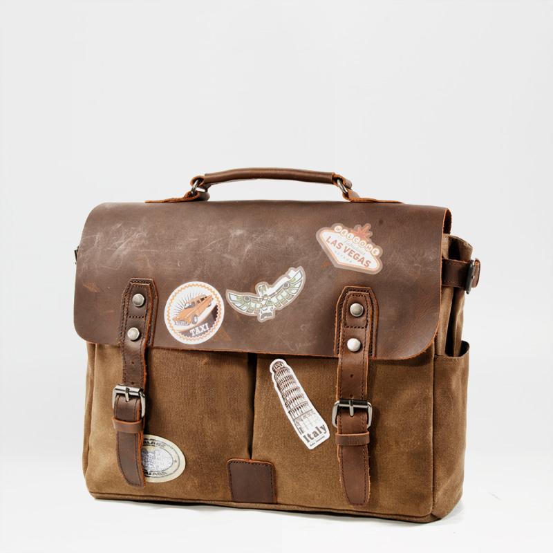 Design: Cool Canvas Leather Mens Side Bag Shoulder Bag Messenger Bag for Men