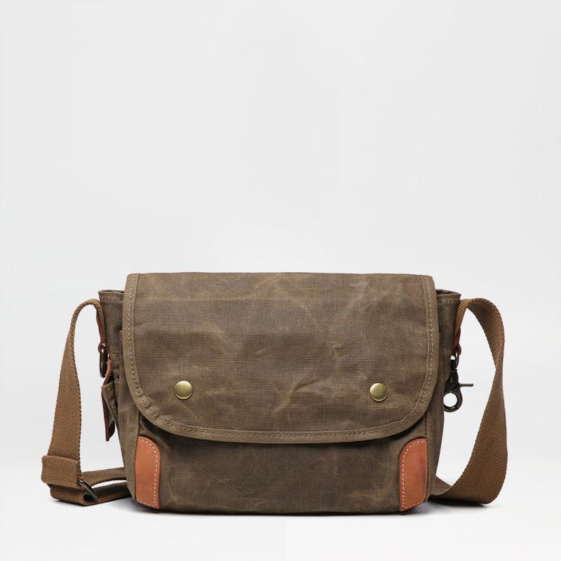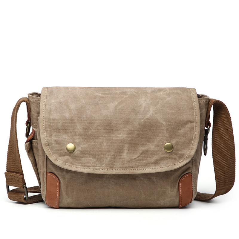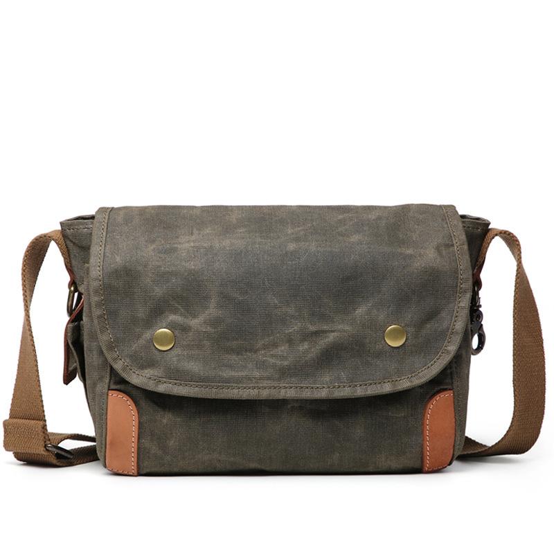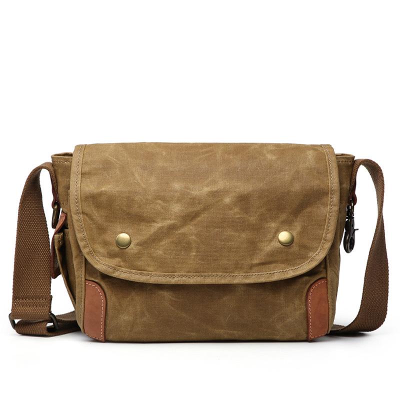 Style: Cool Waxed Canvas Leather Mens Casual Messenger Bag Single Shoulder Diagonal Bag Side Bag For Men