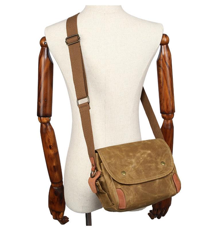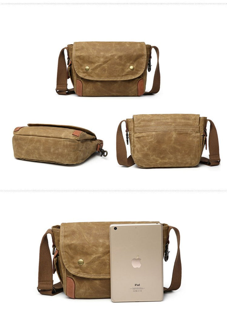 Design: Cool Waxed Canvas Leather Mens Casual Messenger Bag Single Shoulder Diagonal Bag Side Bag For Men