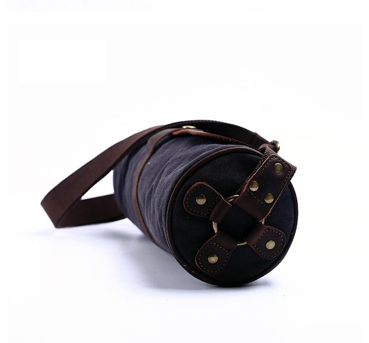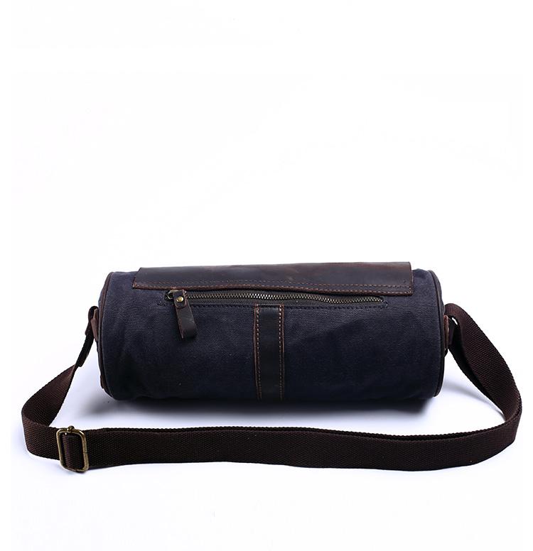 Design: Dark Gray Leather Mens Army Green Barrel Postman Bag Bucket Messenger Bag Chest Bag For Men