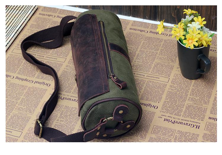 Design: Dark Gray Leather Mens Army Green Barrel Postman Bag Bucket Messenger Bag Chest Bag For MenOverview: