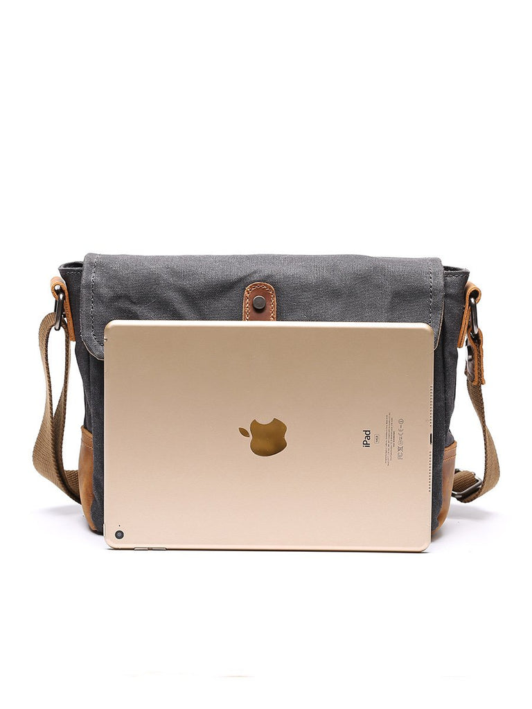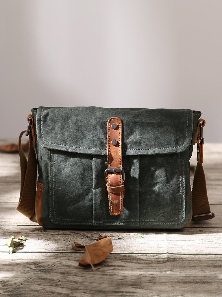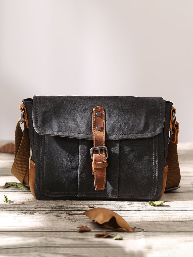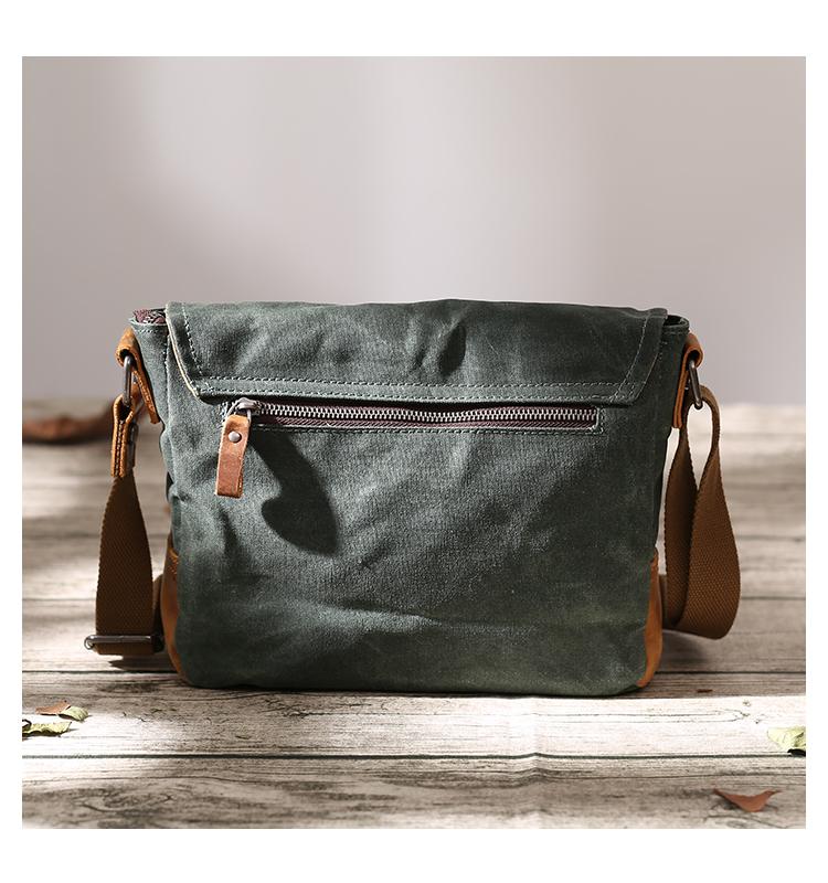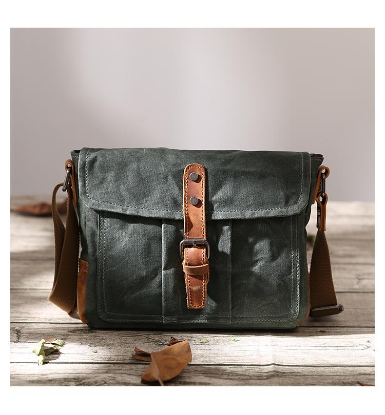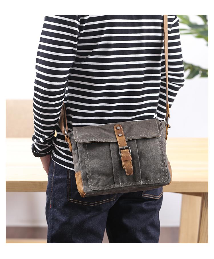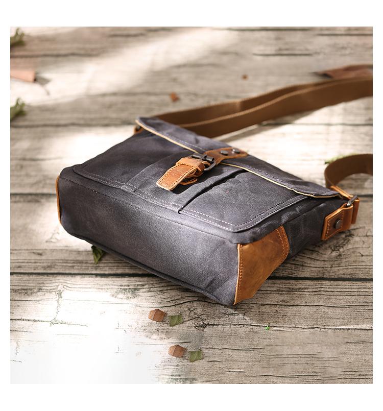 Design: Dark Gray Waxed Canvas Leather Mens Waterproof Shoulder Bag Small Backpack Messenger Bag for Men