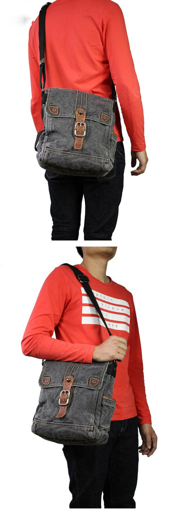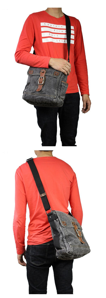 Style: Denim Black Mens 10 inches Messenger Bag Brown Jean Postman Bag Courier Bag For Men