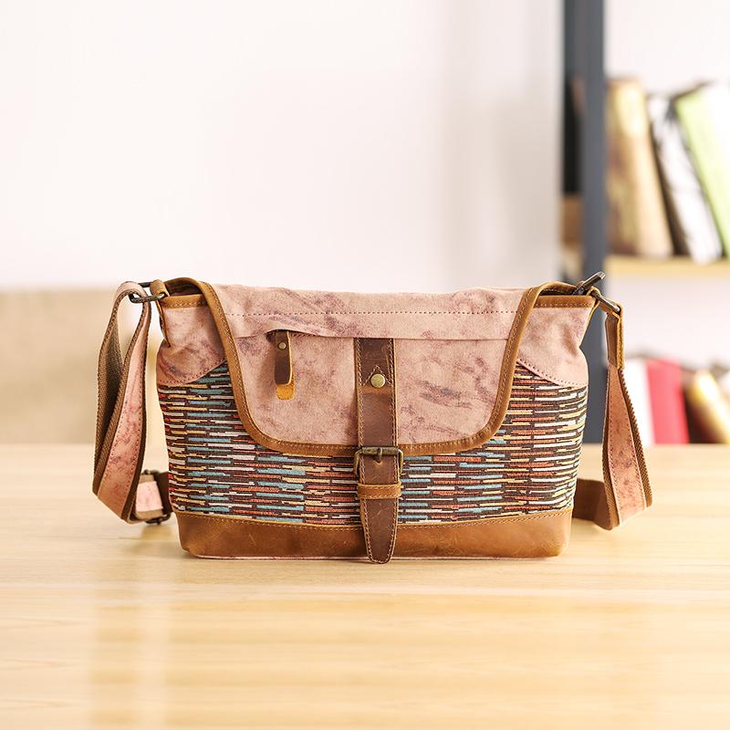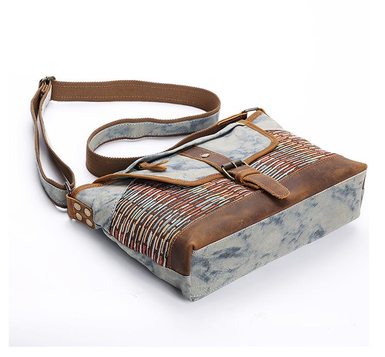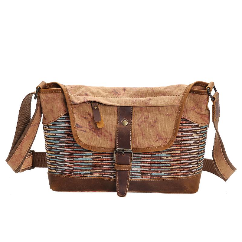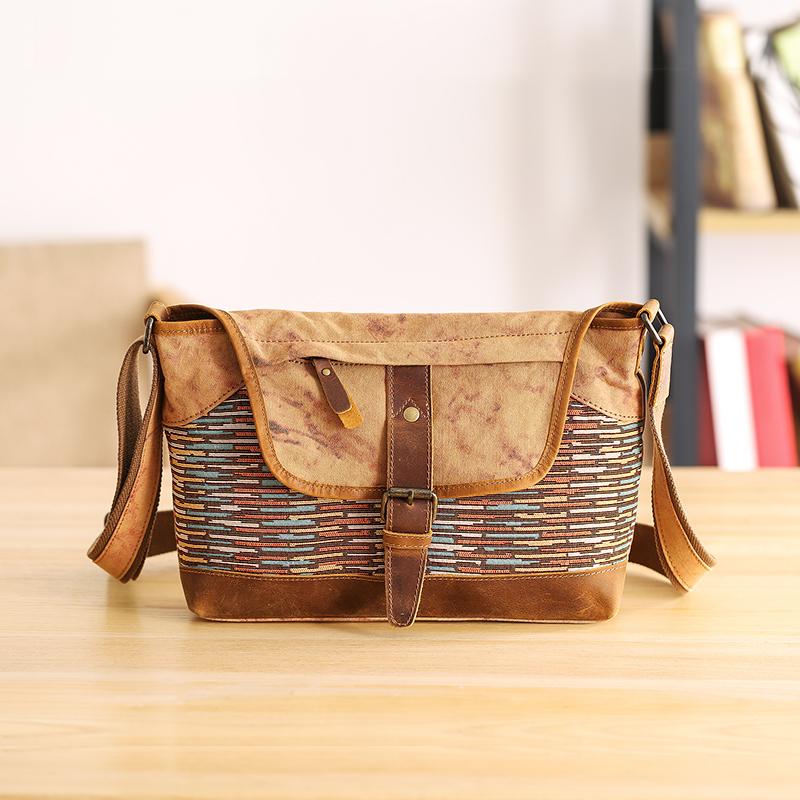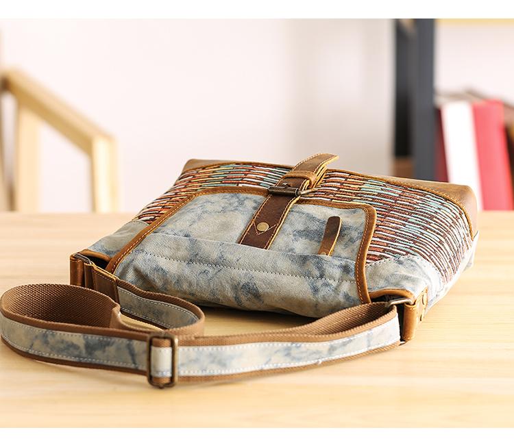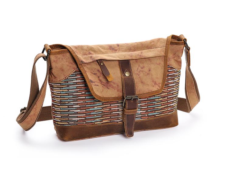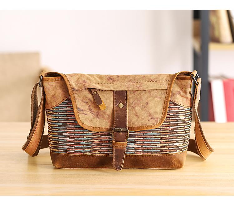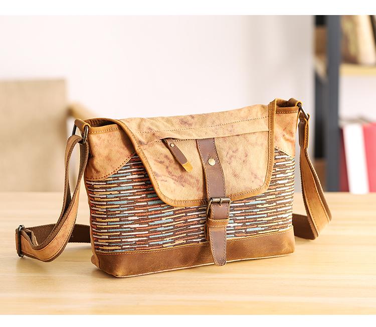 Design: Ethnic Style Waxed Canvas Leather Mens Womens Side Bag Shoulder Bag Messenger Bag for Men