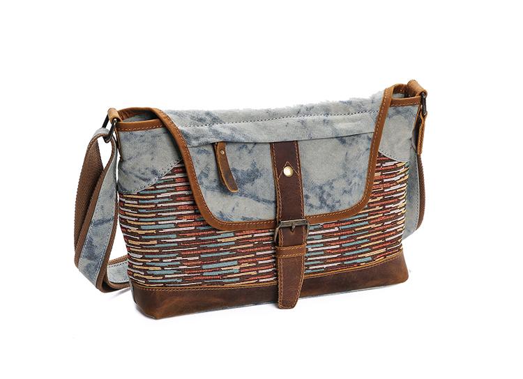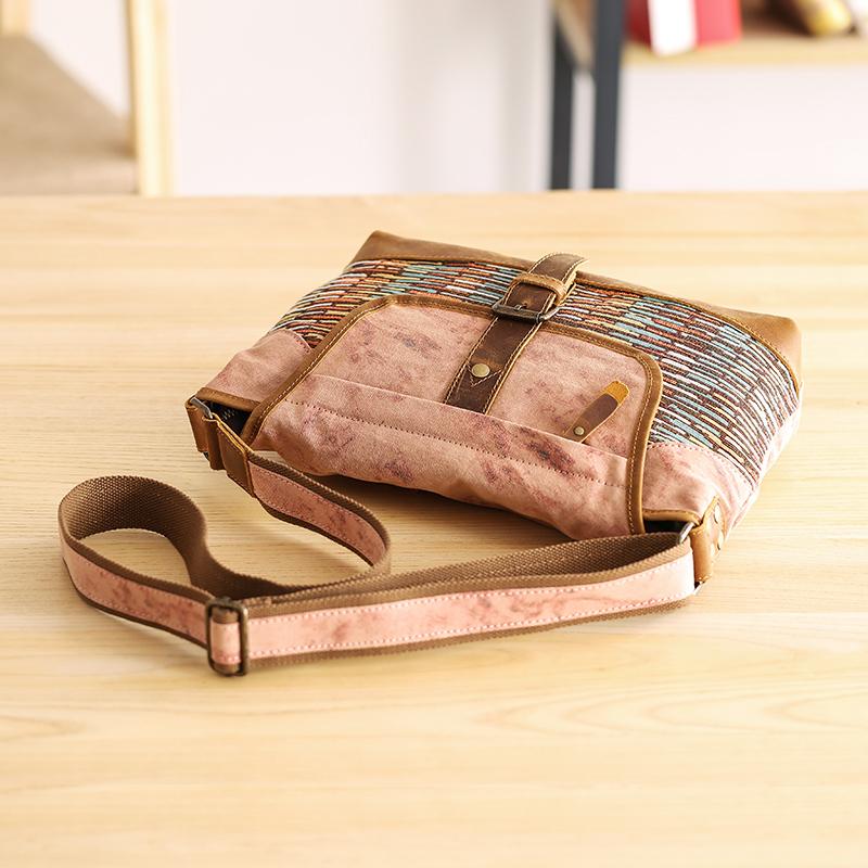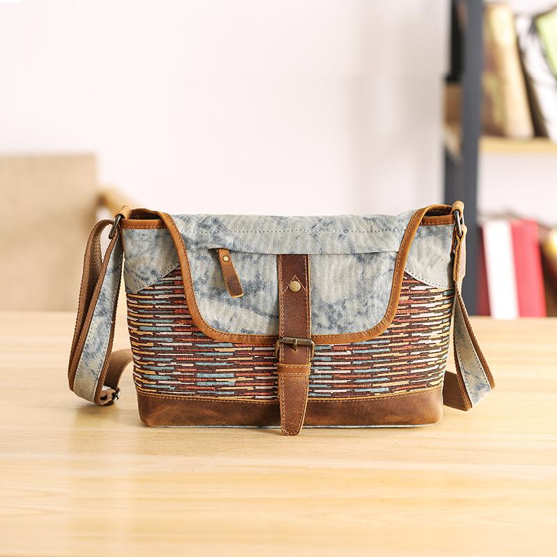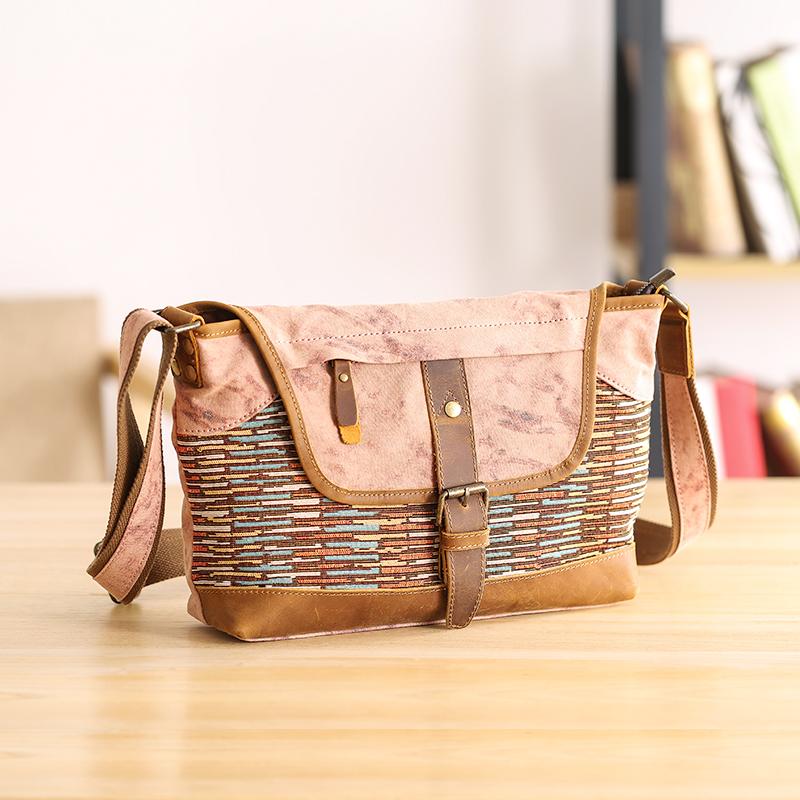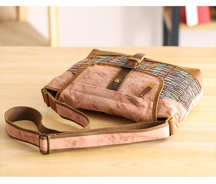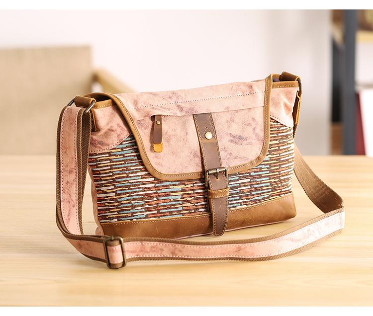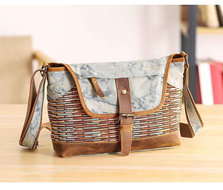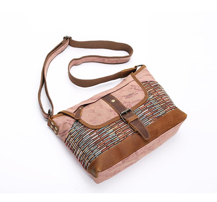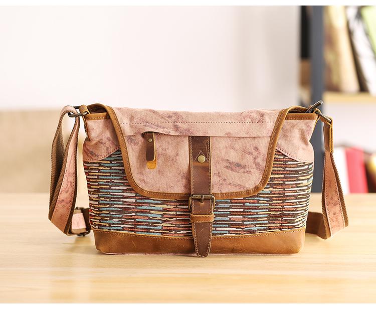 Design: Ethnic Style Waxed Canvas Leather Mens Womens Side Bag Shoulder Bag Messenger Bag for Men