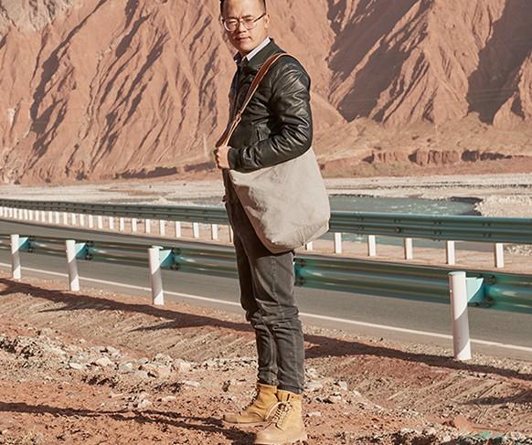 Design: Mens Canvas Gray Cool Bucket Courier bag Messenger Bag Canvas Side Bag for Men