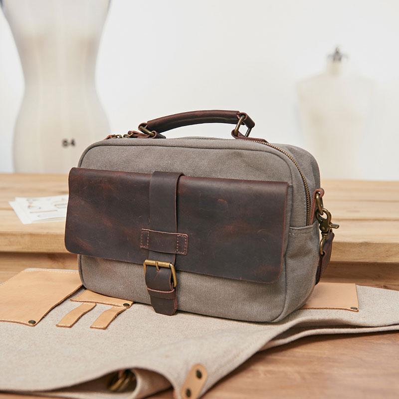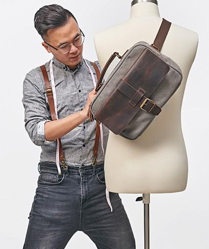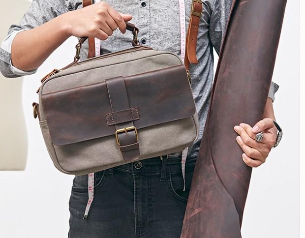 Design: Mens Canvas Gray Cool Side Bag Messenger Bag Canvas Shoulder Bag for Men